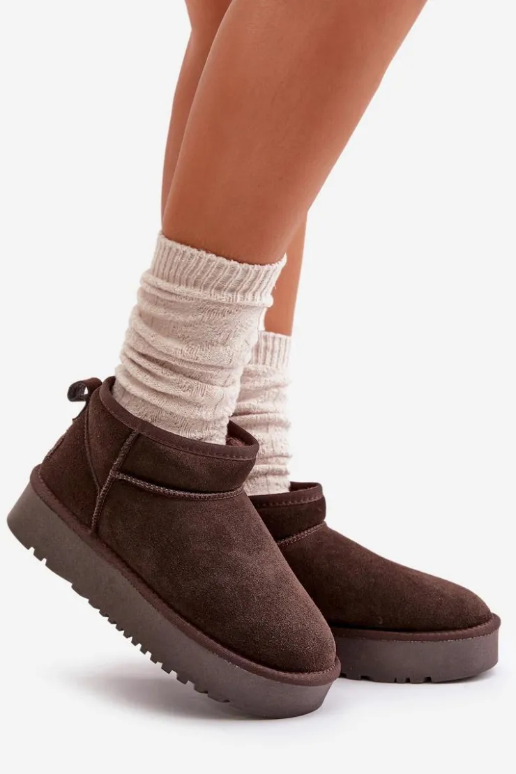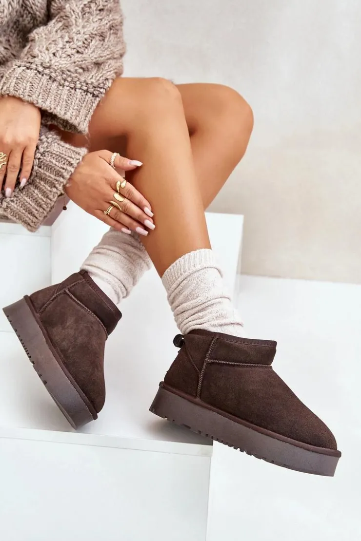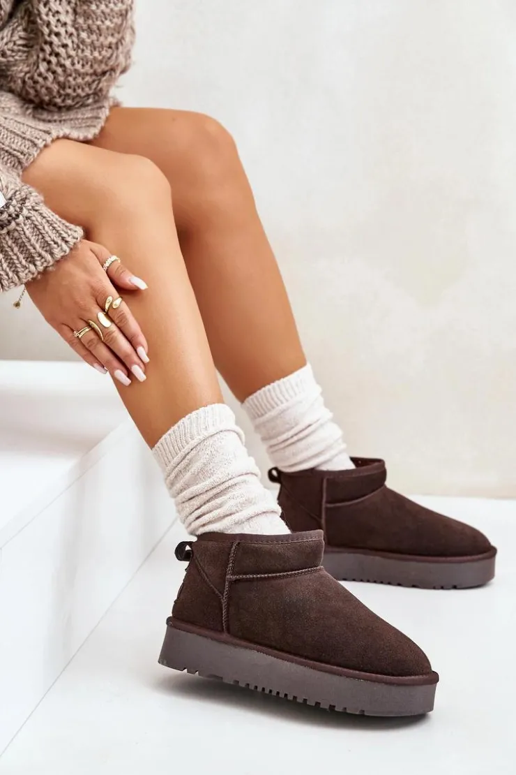 Niezwykle modne śniegowce idealnie sprawdzą się podczas mroźnych dni. Wykonane z naturalnego zamszu. Wnętrze butów zostało ocieplone grubym futerkiem. Osadzone na platformie, która skutecznie odizoluje od zimnego podłoża. Ten model koniecznie powinien znaleźć się w Twojej szafie! Przy wyborze rozmiaru prosimy sugerować się tabelą rozmiarów.