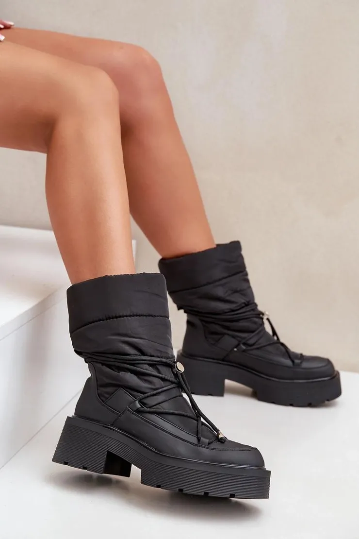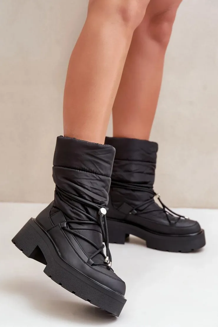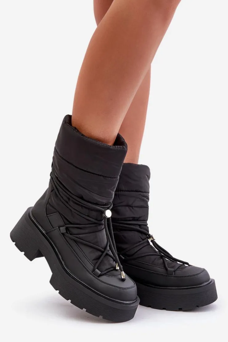 Śniegowce to idealne buty na chłodne i wietrzne dni. Wykonane z połączenia materiału tekstylnego oraz eko skóry. Model ten został osadzony na masywnej platformie i płaskim obcasie ze żłobieniami. Zapiętek jest usztywniany. Środek został ocieplony kocem obuwniczym. Świetny model dla każdego zmarzlucha! Przy wyborze rozmiaru prosimy sugerować się tabelą rozmiarów.