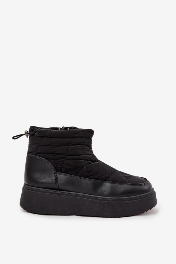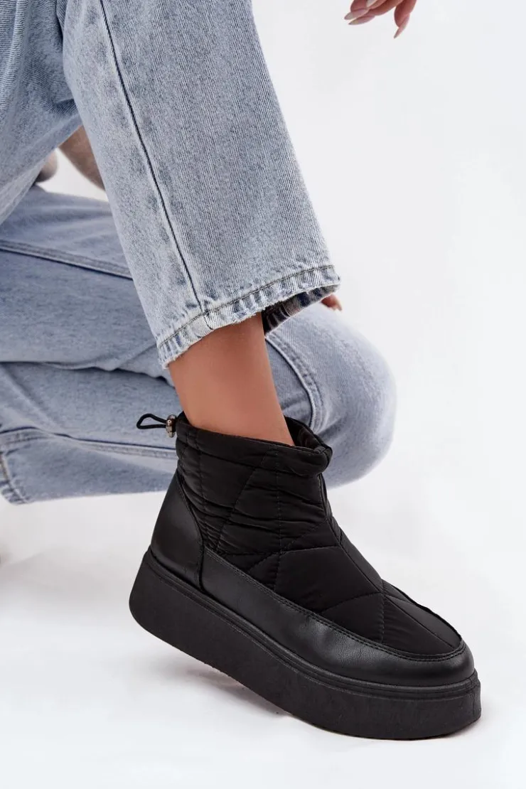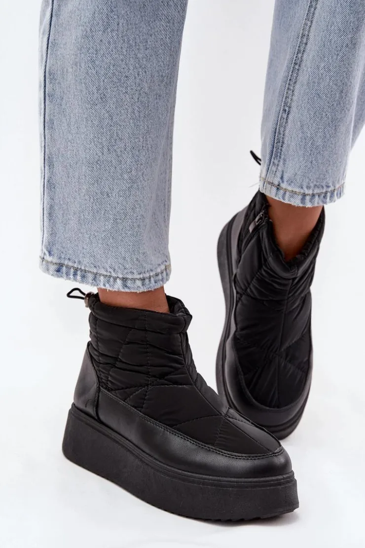 Śniegowce damskie wykonane z eko skóry oraz materiału tekstylnego z dekoracyjnymi przeszyciami, prezentują się stylowo, a jednocześnie doskonale chronią przed zimnem. Model osadzony jest na stabilnej platformie, która zapewnia wygodę i dobrą izolację od chłodnego podłoża. Buty są ocieplane miękkim futerkiem, dzięki czemu gwarantują ciepło nawet w mroźne dni. Zamek ułatwia zakładanie, a ściągacz z tyłu na górze cholewki pozwala dopasować obuwie do nogi, zapobiegając przedostawaniu się zimna. Idealne na zimowe spacery, górskie wyjazdy i codzienne stylizacje w chłodne dni. Przy wyborze rozmiaru prosimy sugerować się tabelą rozmiarów.