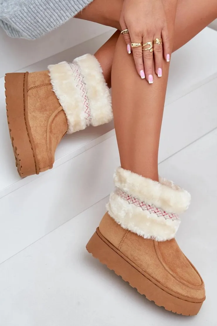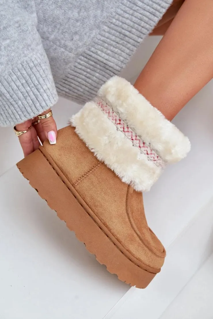 Śniegowce z eko zamszu na platformie to stylowy i funkcjonalny wybór na zimę. Cholewka ozdobiona futerkiem oraz modnym wzorem dodaje im charakteru, a podwyższona platforma izoluje od chłodnego podłoża, zapewniając ciepło i wygodę. Idealne na mroźne dni, łączą komfort z modnym designem. Model ten występuje również w rozmiarach dziecięcych! Stwórz komplet mama + dziecko! Przy wyborze rozmiaru prosimy sugerować się tabelą rozmiarów.