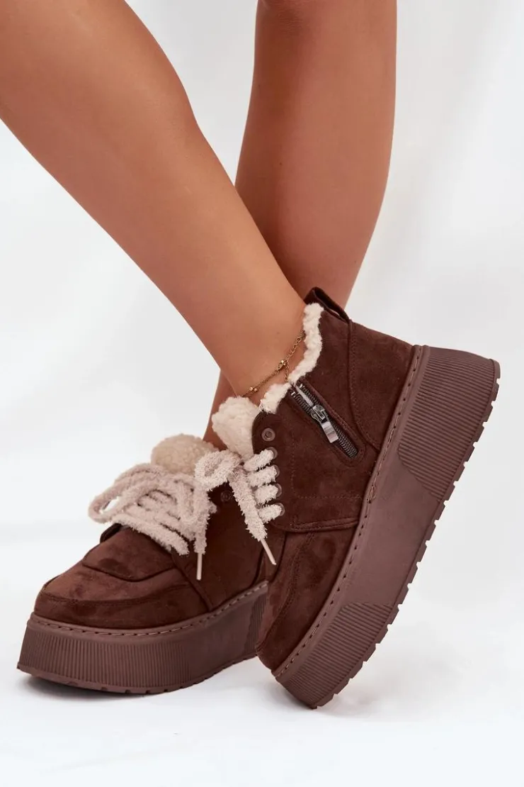 Zimowe dni nie muszą oznaczać rezygnacji ze stylu – te damskie śniegowce z eko zamszu łączą modny wygląd z funkcjonalnością. Masywna platforma chroni przed chłodem od podłoża, a futerko typu baranek gwarantuje ciepło i wygodę nawet w mroźne dni. Dzięki połączeniu zamka i sznurowania buty świetnie trzymają się na nodze i łatwo je zakładać. To idealny wybór na co dzień – komfortowe, praktyczne i pełne zimowego uroku. Przy wyborze rozmiaru prosimy sugerować się tabelą rozmiarów.