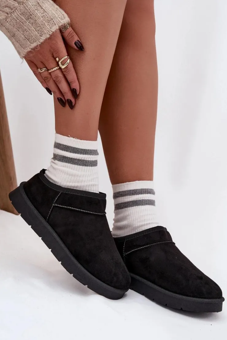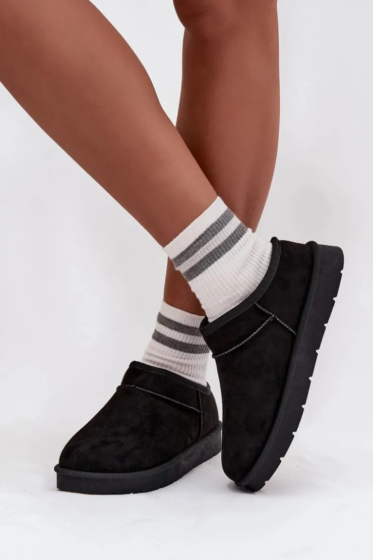 Śniegowce damskie wykonane z eko zamszu to praktyczna i stylowa propozycja na zimowe dni. Model jest niski i wsuwany, dzięki czemu zakładanie i zdejmowanie butów jest wyjątkowo wygodne. Wnętrze zostało ocieplone miękkim futerkiem, które zapewnia ciepło oraz komfort nawet w mroźne dni. To idealne obuwie na codzienne wyjścia – wygodne i uniwersalne, doskonale sprawdzą się podczas spacerów, zakupów czy drogi do pracy. Przy wyborze rozmiaru prosimy kierować tabelą rozmiarów.
