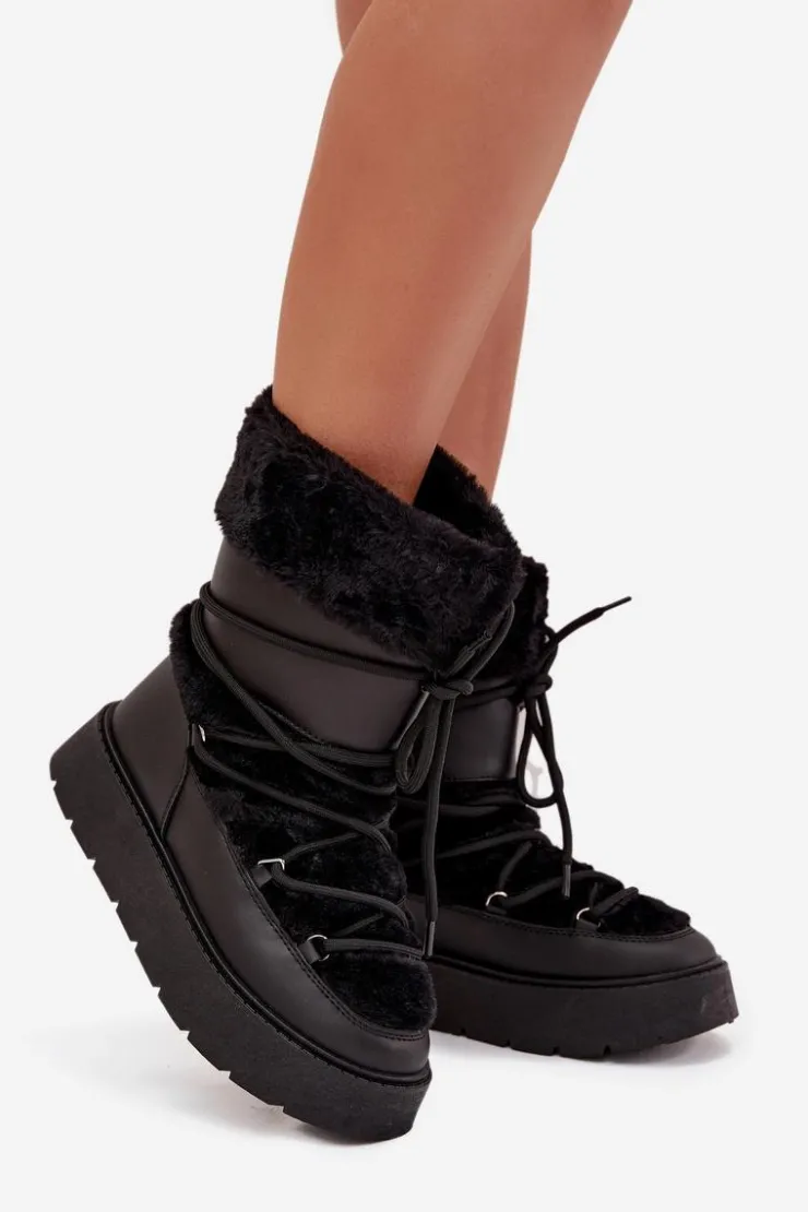 Śniegowce damskie na platformie to połączenie mody i funkcjonalności na zimowe dni. Wykonane z eko skóry. Ciepłe futerko zarówno na zewnątrz, jak i wewnątrz butów, gwarantuje komfort i ciepło nawet w najchłodniejsze dni. Wiązanie pozwala na lepsze dopasowanie. Idealne na zimowe wypady, łączą stylowy wygląd z wygodą i ochroną przed zimnem. Przy wyborze rozmiaru prosimy sugerować się tabelą rozmiarów.
