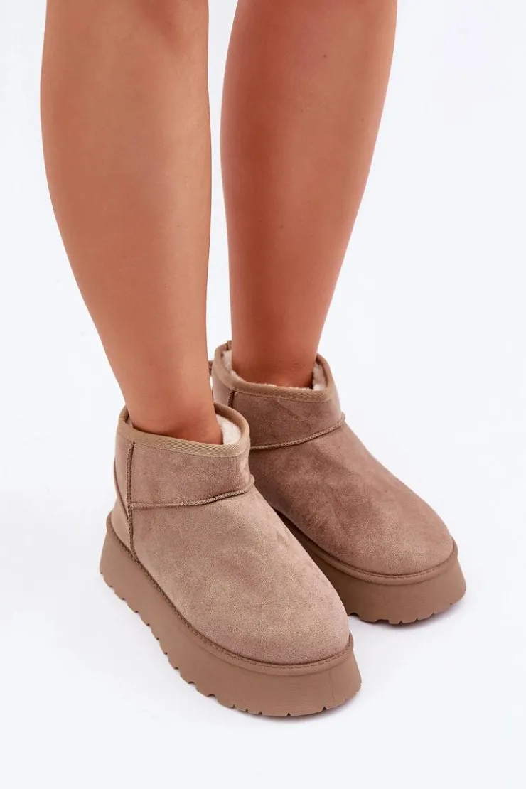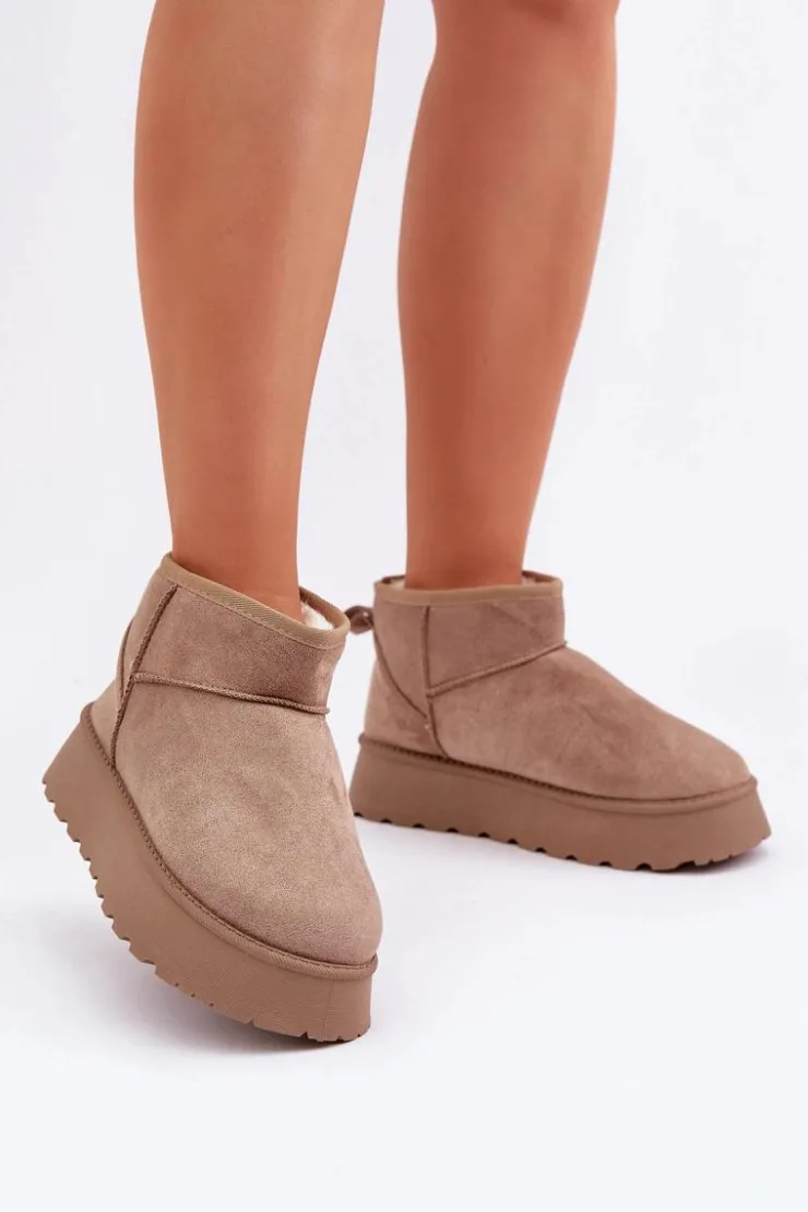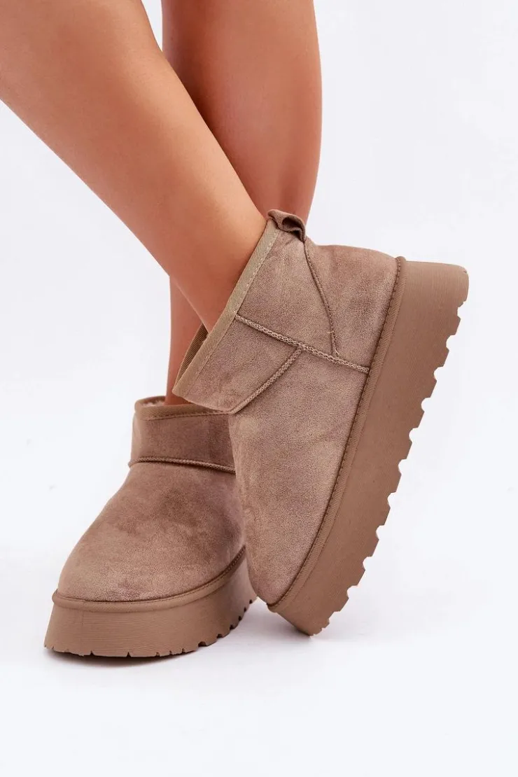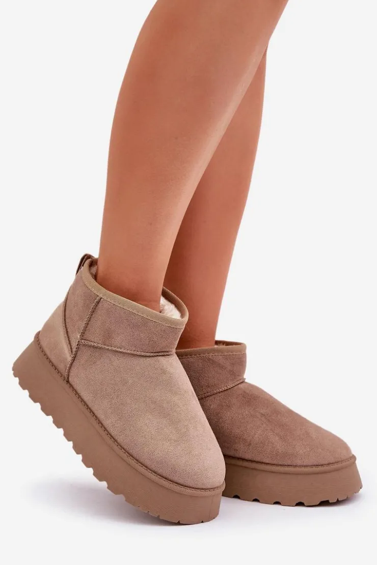 Stylowe śniegowce damskie wykonane z eko zamszu, które zapewnią komfort i ciepło w chłodne dni. Osadzone na modnej platformie, idealnie izolują od zimnego podłoża. Wnętrze ocieplane miękkim futerkiem, które zapewni ciepło w mroźne dni. Doskonałe połączenie wygody i stylowego wyglądu na zimowe dni. Przy wyborze rozmiaru prosimy kierować tabelą rozmiarów.