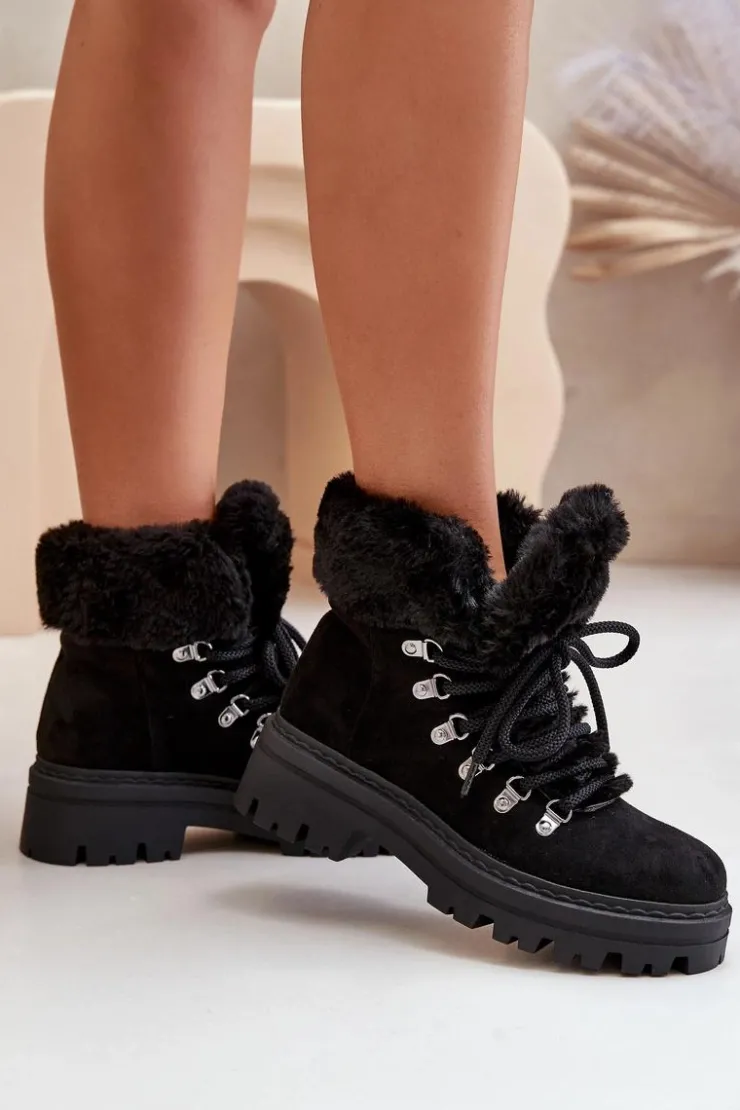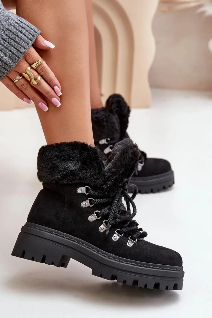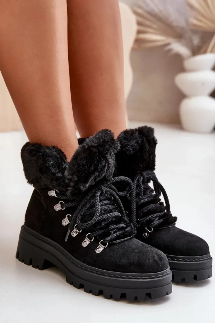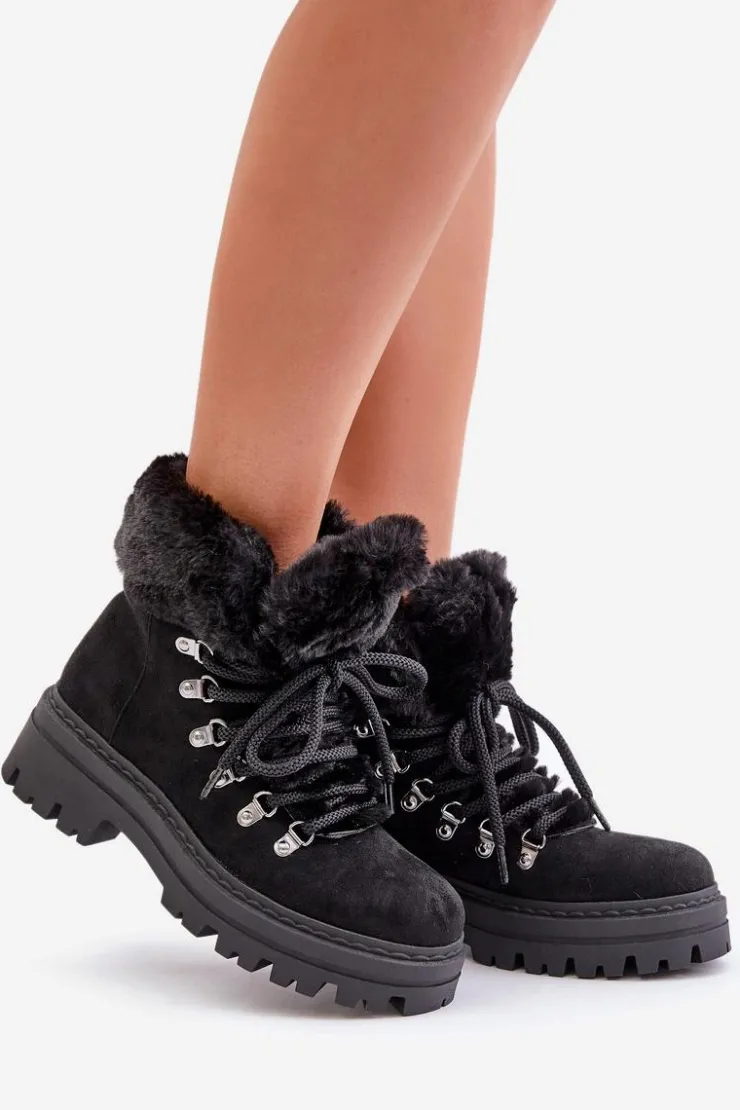 Trapery damskie wykonane z eko zamszu to doskonały wybór na chłodne dni. Sznurowanie pozwala na precyzyjne dopasowanie buta do stopy, zapewniając wygodę podczas codziennego użytkowania. Wnętrze ocieplane kocem obuwniczym gwarantuje ciepło i komfort nawet w mroźne dni. Górna część cholewki została ozdobiona miękkim futerkiem, które nie tylko dodaje stylu, ale również chroni przed zimnem. Te trapery łączą w sobie funkcjonalność i modny wygląd, idealnie sprawdzając się zarówno w miejskich stylizacjach, jak i podczas zimowych spacerów. Przy wyborze rozmiaru prosimy sugerować się tabelą rozmiarów.