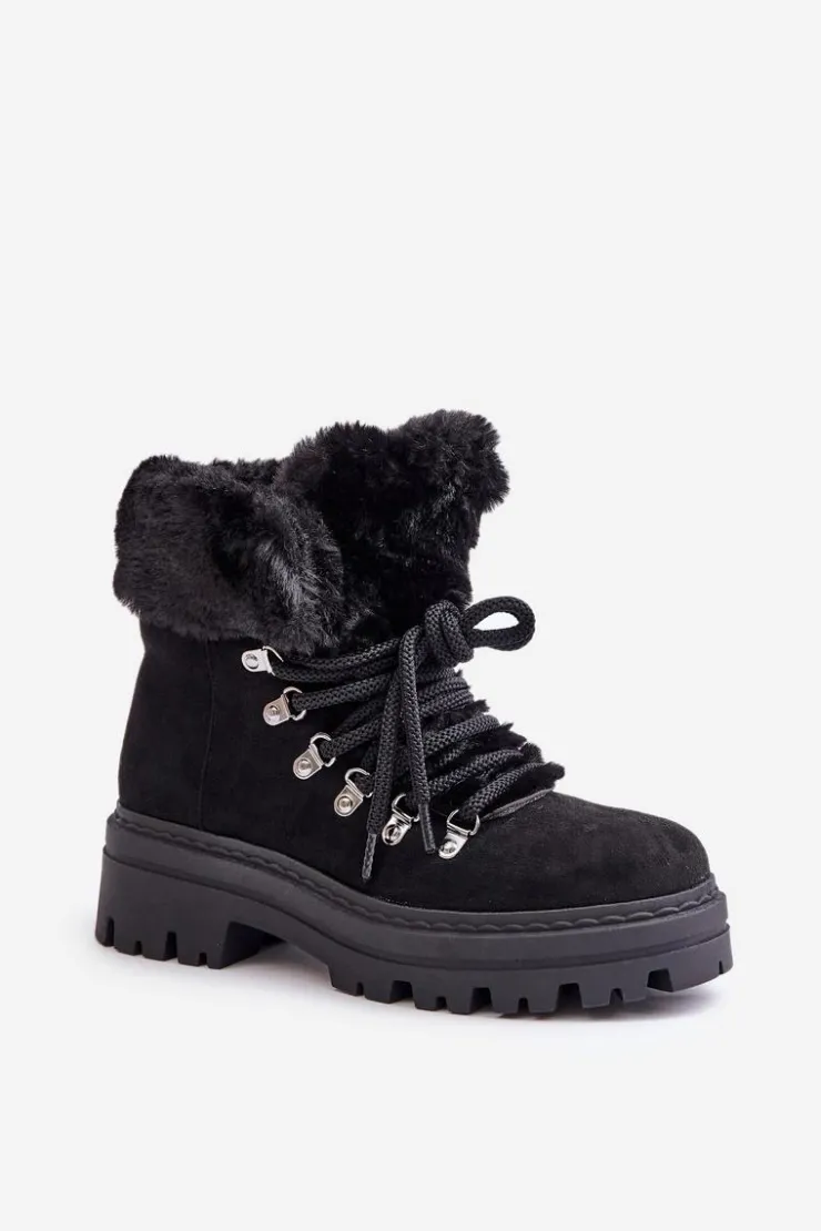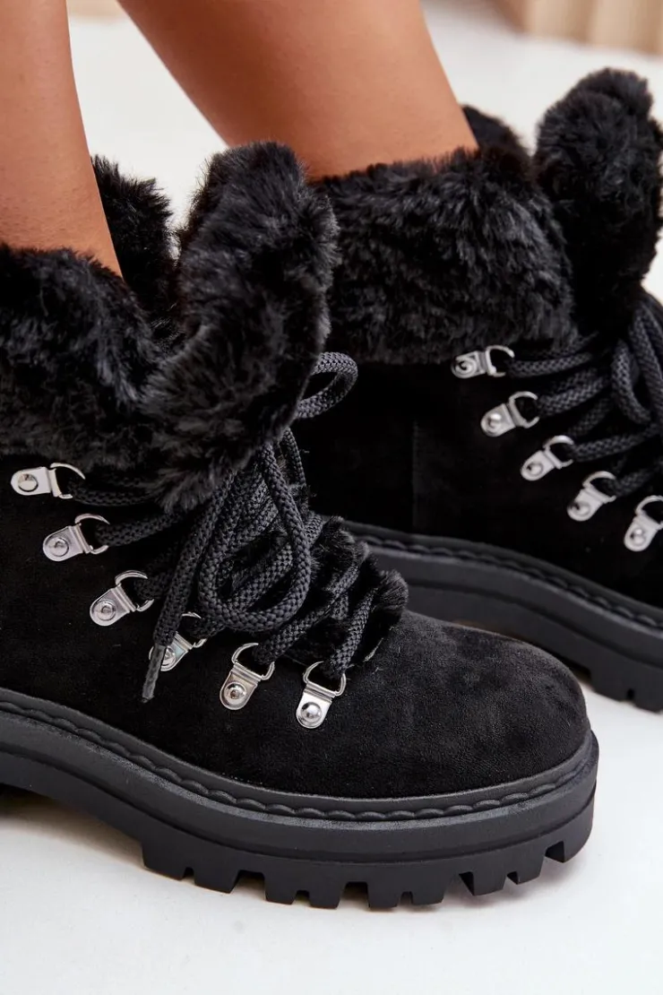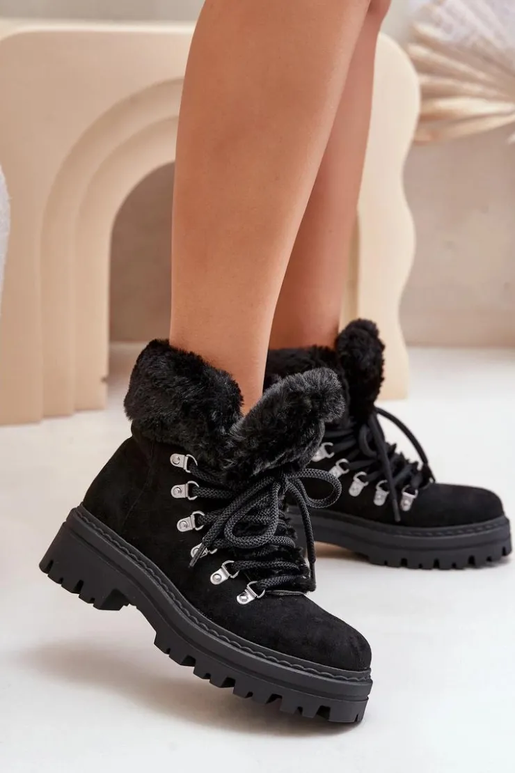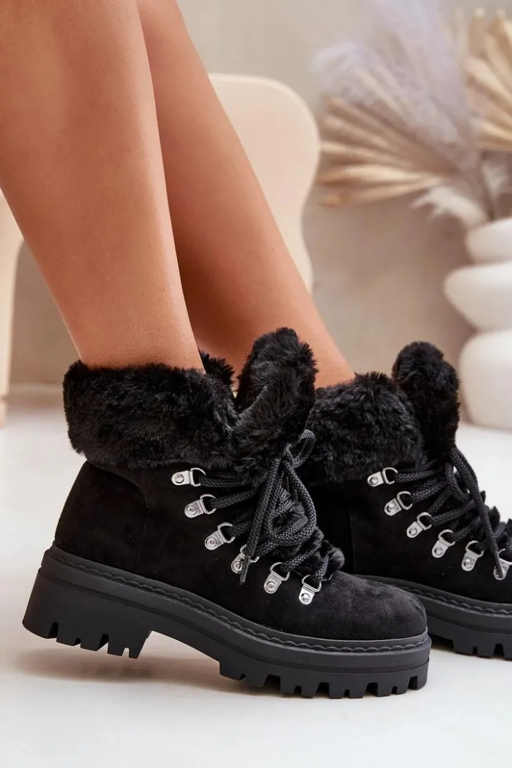 Trapery damskie wykonane z eko zamszu to doskonały wybór na chłodne dni. Sznurowanie pozwala na precyzyjne dopasowanie buta do stopy, zapewniając wygodę podczas codziennego użytkowania. Wnętrze ocieplane kocem obuwniczym gwarantuje ciepło i komfort nawet w mroźne dni. Górna część cholewki została ozdobiona miękkim futerkiem, które nie tylko dodaje stylu, ale również chroni przed zimnem. Te trapery łączą w sobie funkcjonalność i modny wygląd, idealnie sprawdzając się zarówno w miejskich stylizacjach, jak i podczas zimowych spacerów. Przy wyborze rozmiaru prosimy sugerować się tabelą rozmiarów.
