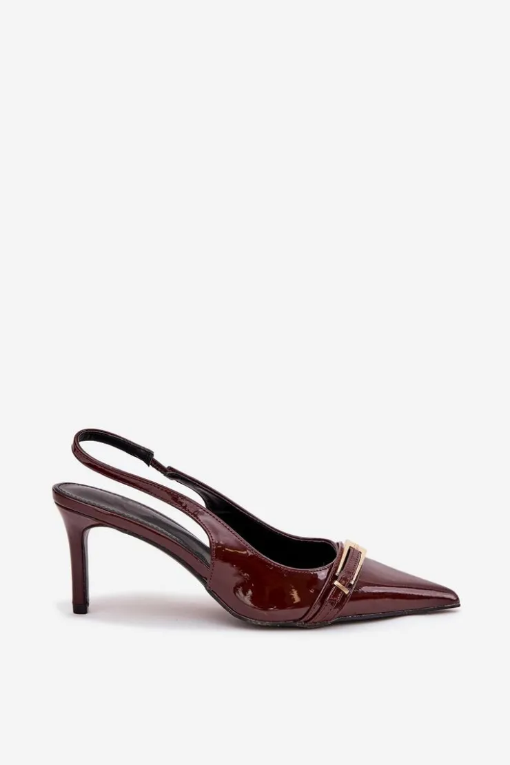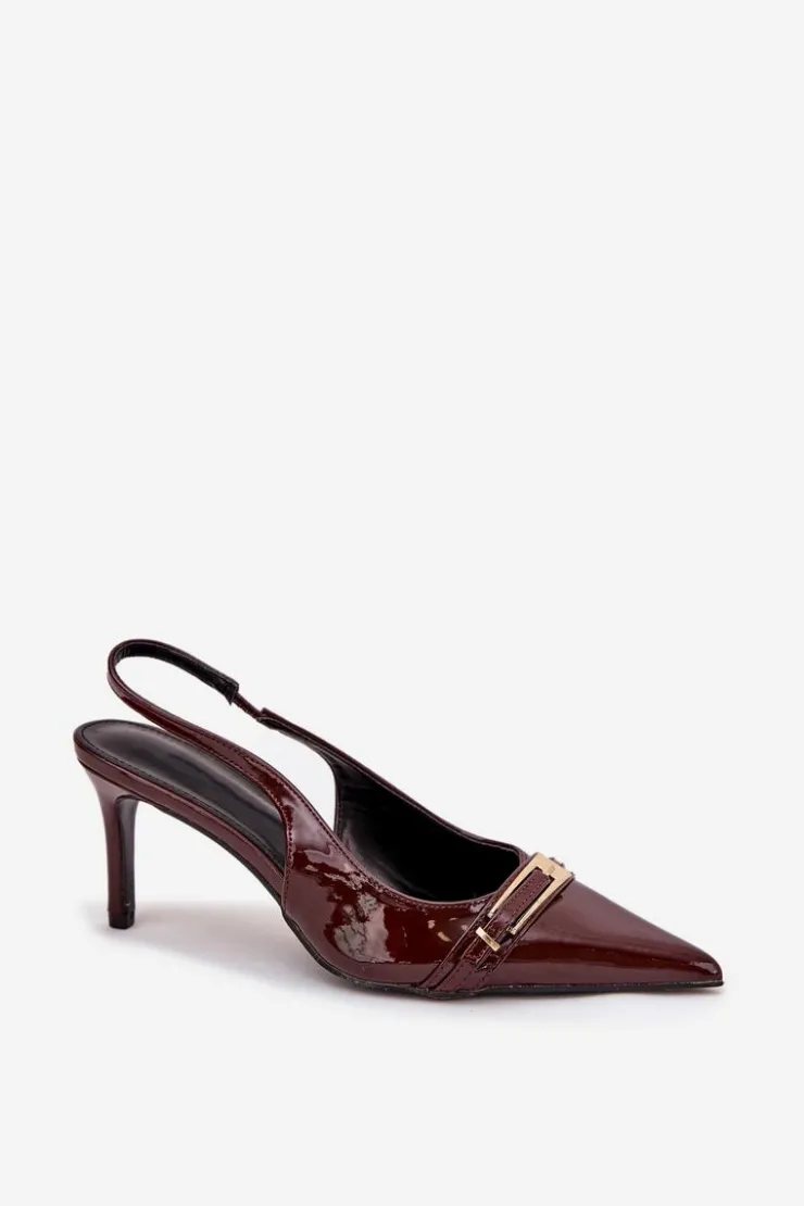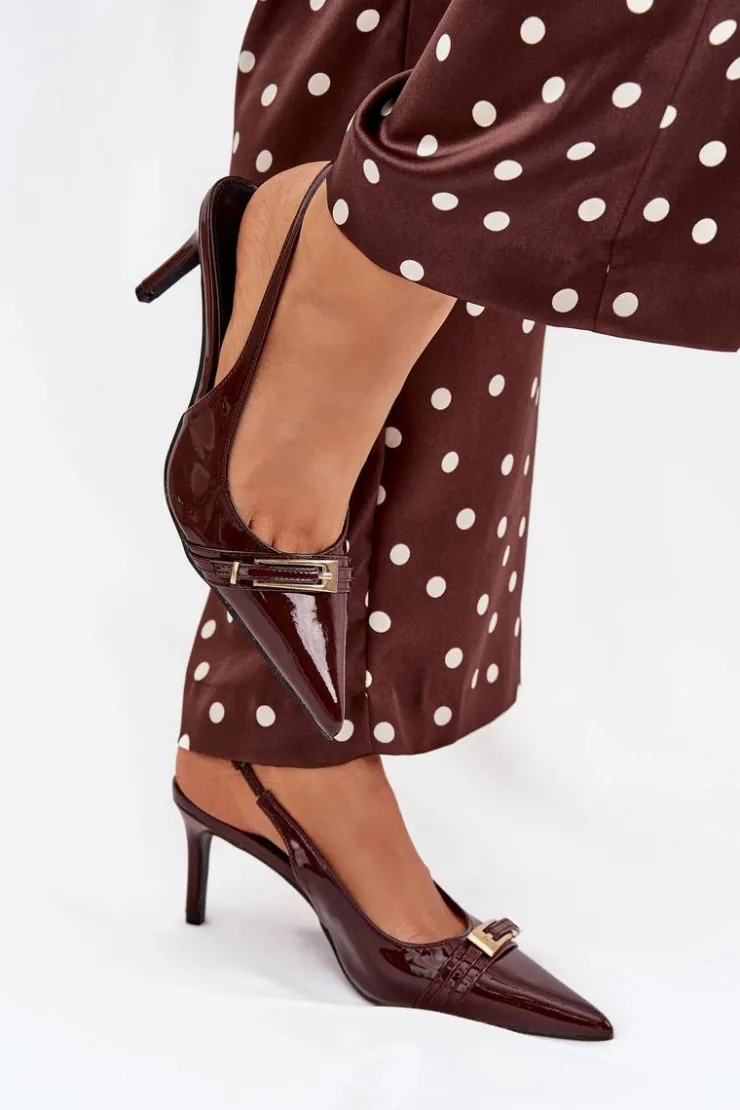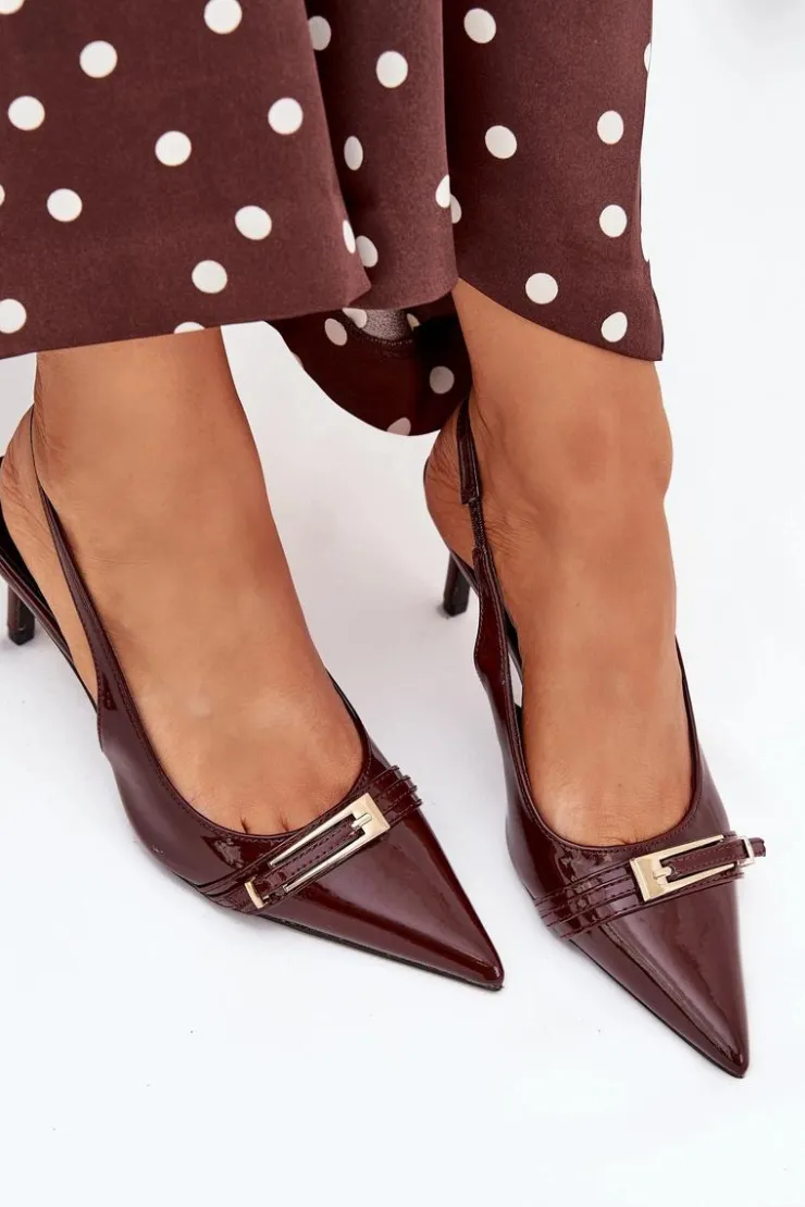 Boto Szpilki Lakierowane|Czółenka Klasyczne*Lakierowane Czółenka Na Szpilce Ze Złotą Klamrą Czekoladowe Vivae