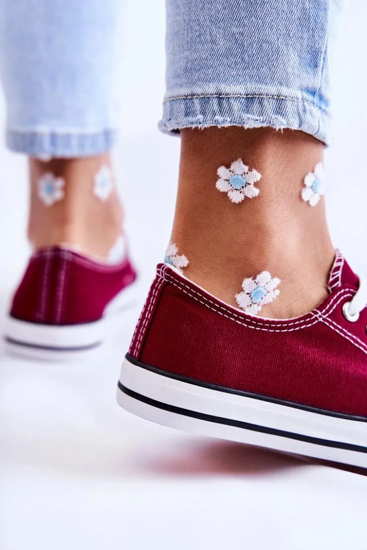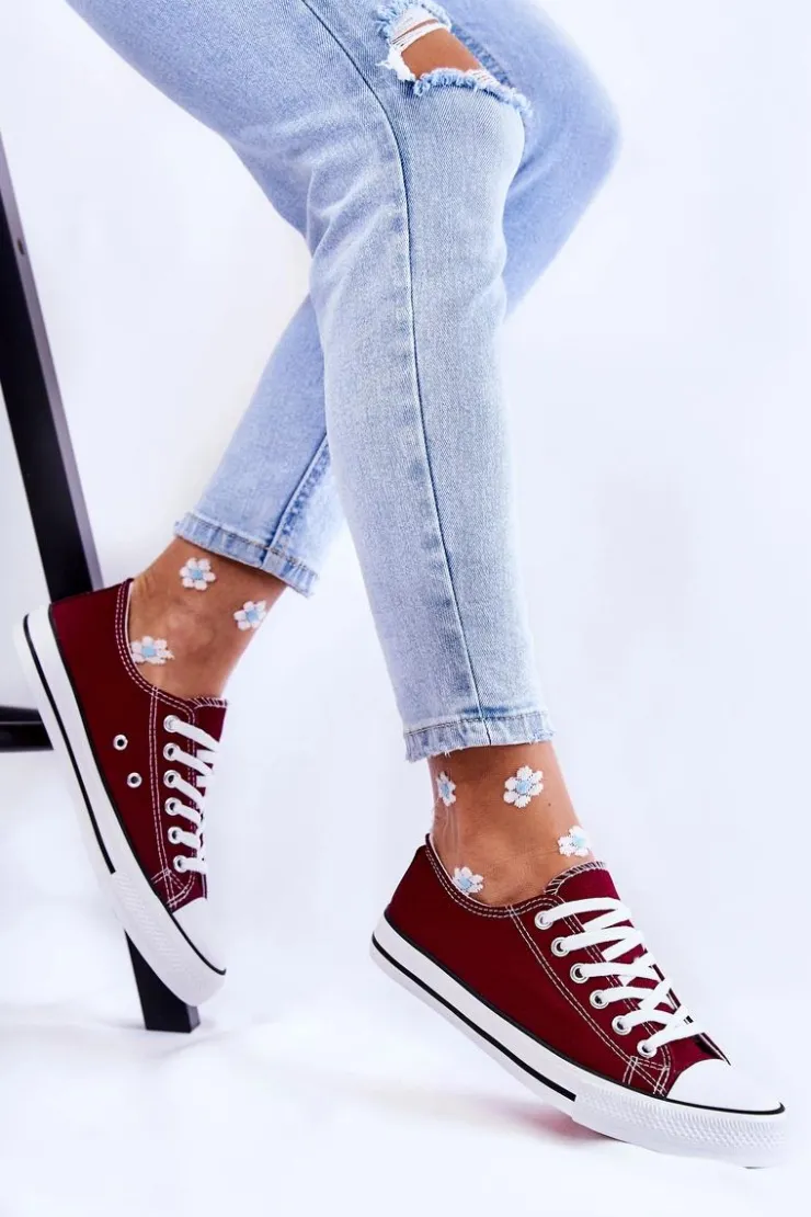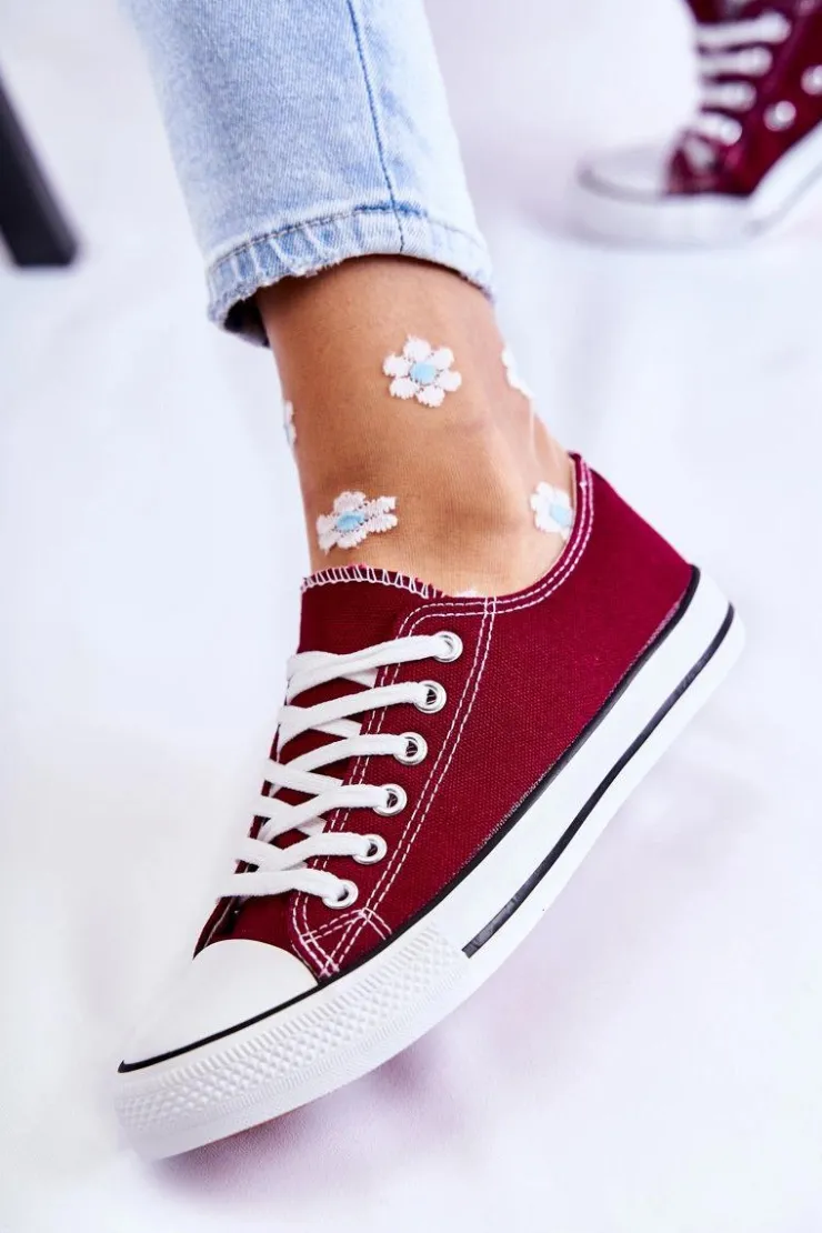 Boto Trampki Damskie Niskie*Damskie Klasyczne Trampki Wiązane Bordowe Be Mine