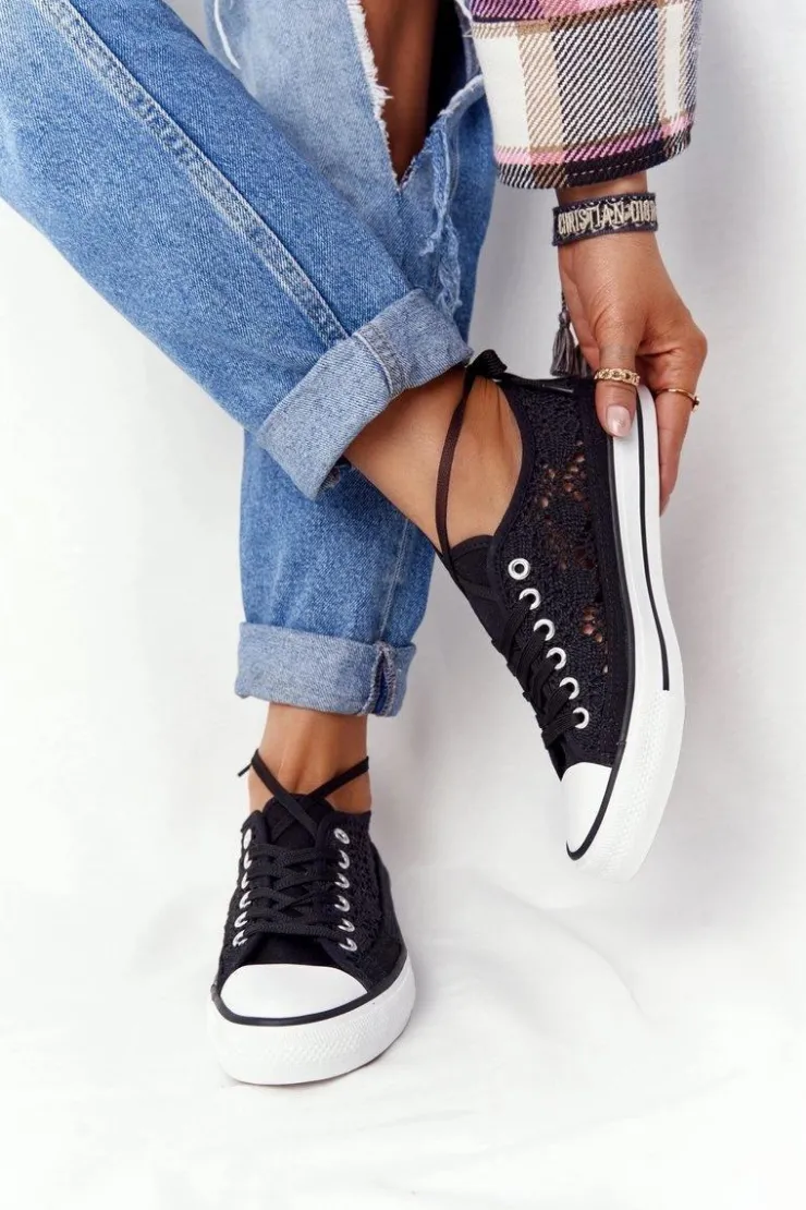 Wyjątkowe damskie trampki. Koronkowe tenisówki pasują do wielu letnich stylizacji. Buty dobrze dopasowują się do kształtu stopy, posiadają miękką, materiałową wkładkę oraz antypoślizgową podeszwę. Koniecznie sprawdź całą naszą kolekcję damskich trampek. Przy wyborze rozmiaru prosimy sugerować się tabelą rozmiarów.