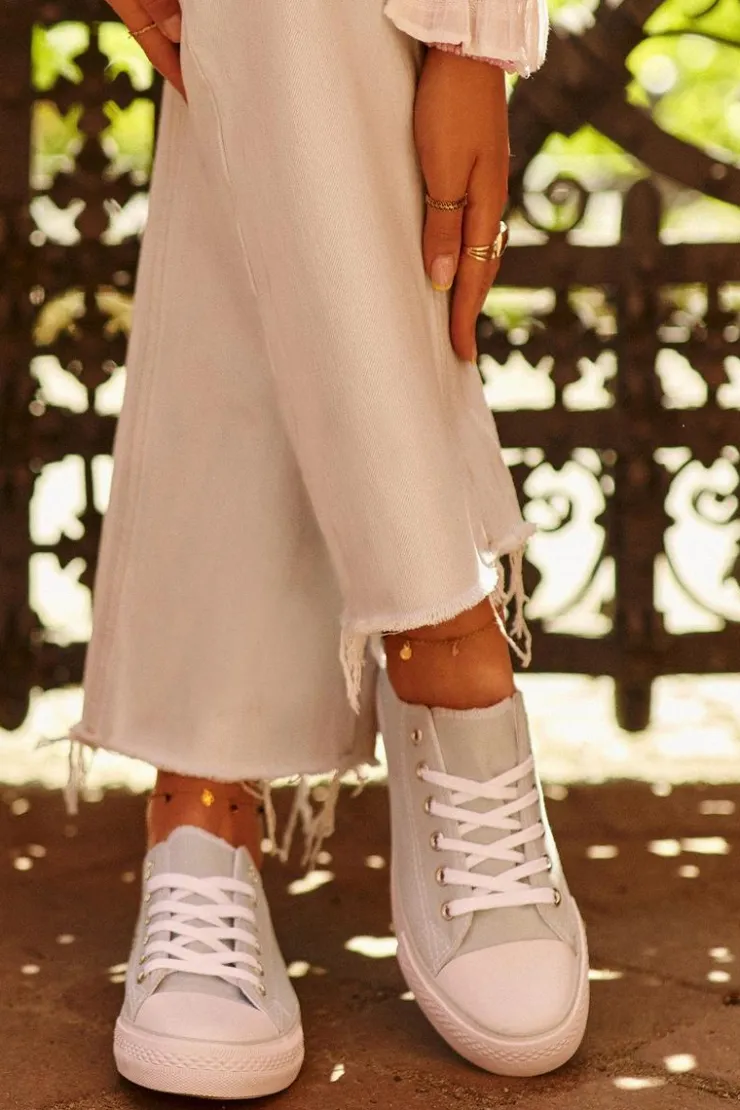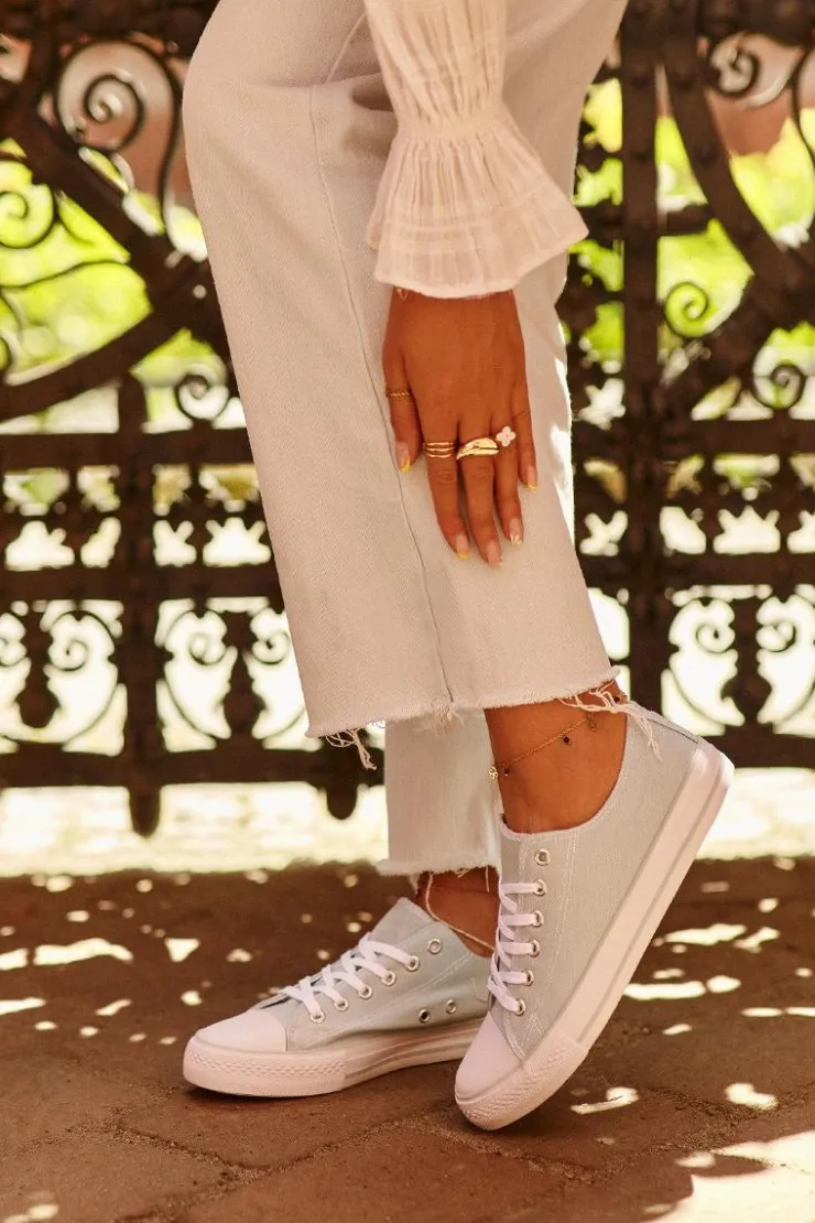 Niskie trampki damskie osadzone na gumowej podeszwie. Idealne na co dzień, łączą wygodę z ponadczasowym stylem. Perfekcyjny wybór do casualowych stylizacji. Model ten koniecznie powinien znaleźć się w Twojej szafie! Przy wyborze rozmiaru prosimy sugerować się tabelą rozmiarów.