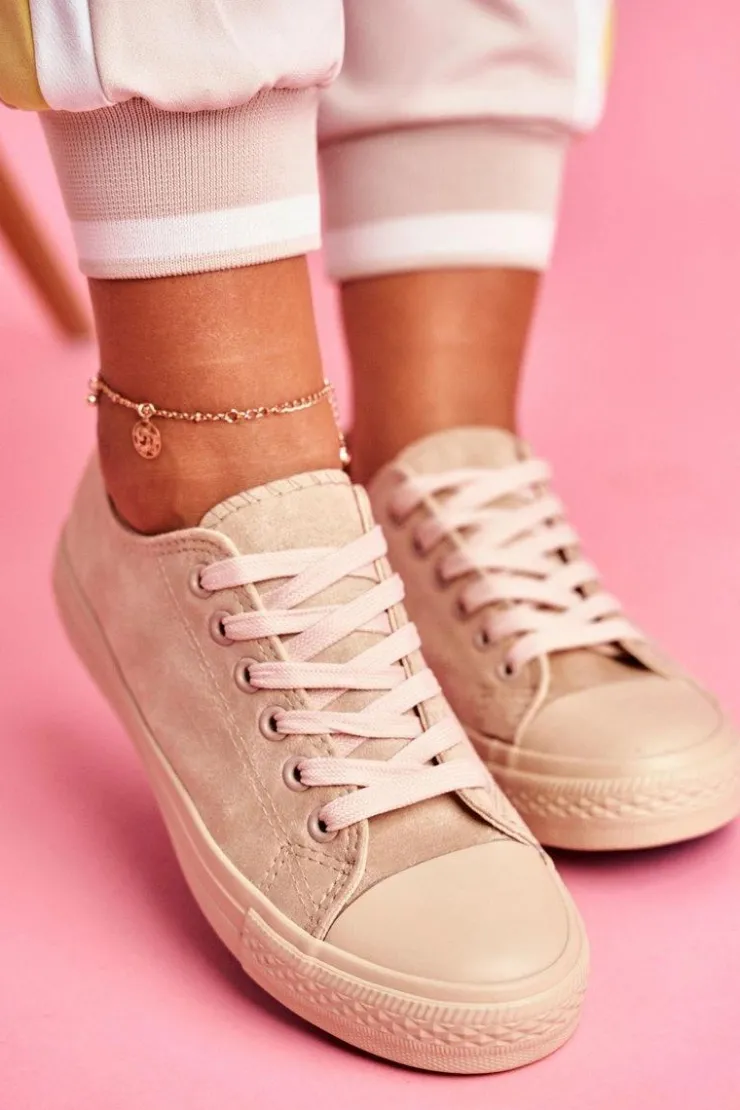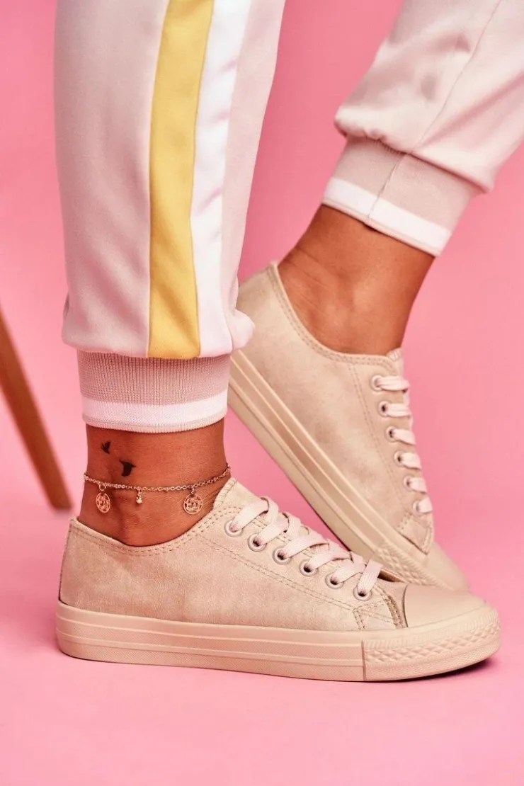 Boto Trampki Damskie Niskie*Damskie Trampki Zamszowe Beżowe El Paso