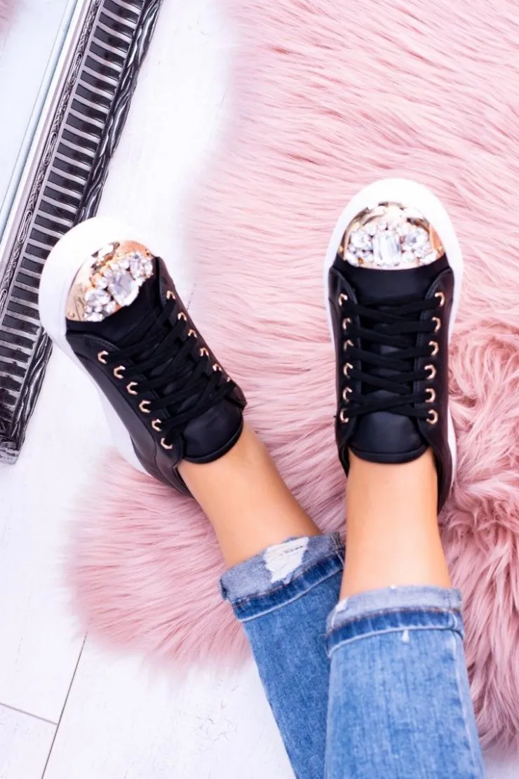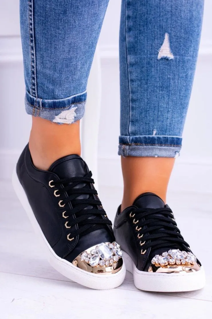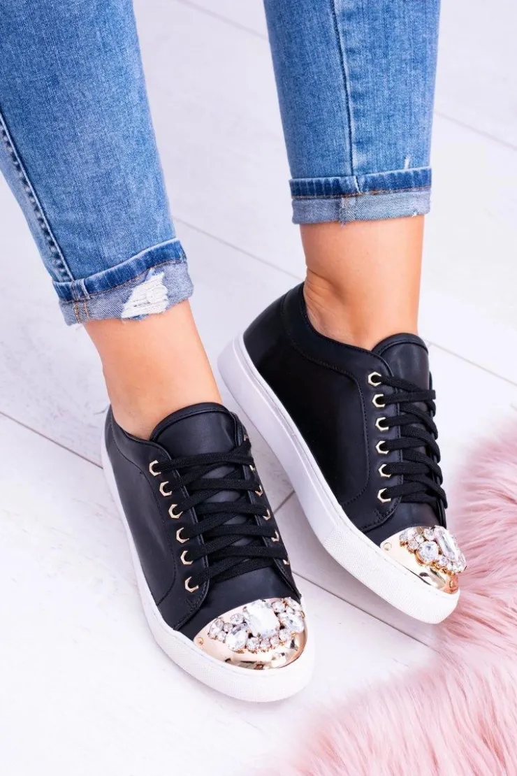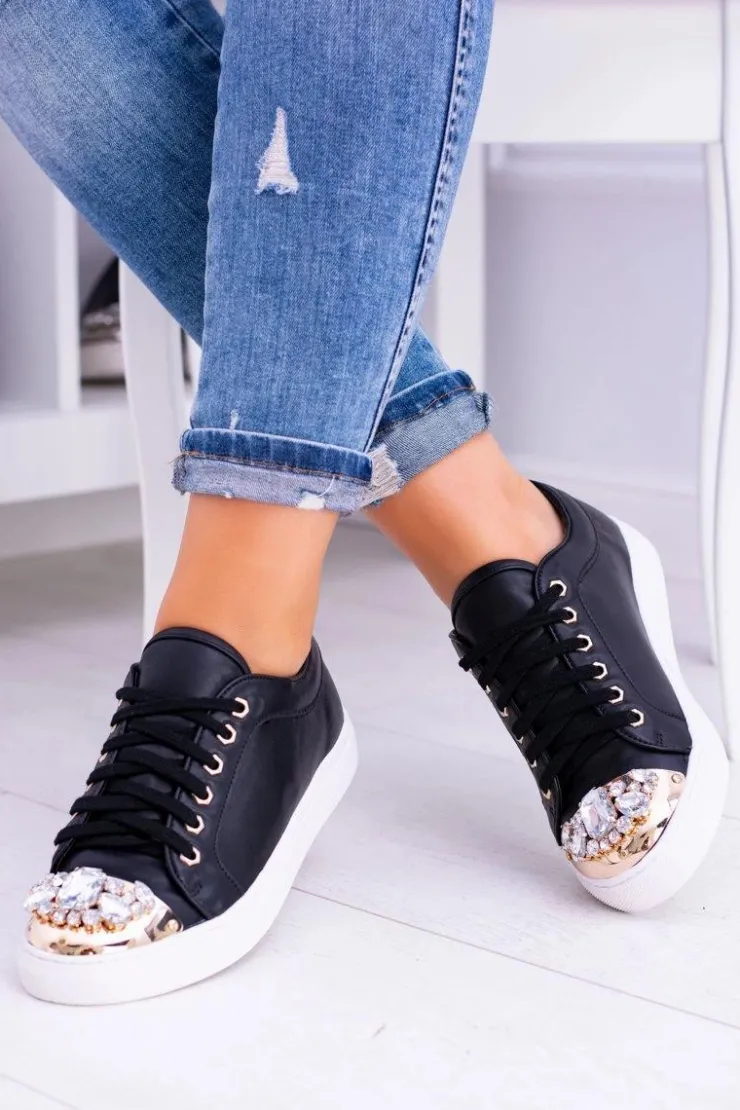 Boto Trampki Damskie Niskie*Lu Boo Czarne Trampki z Błyszczącymi Kryształami