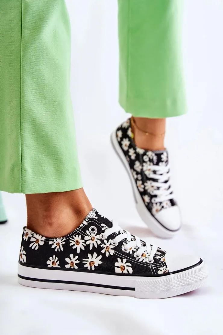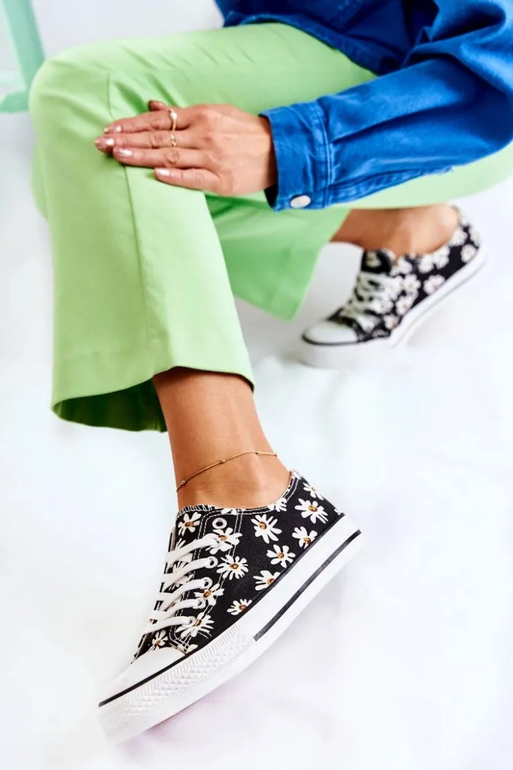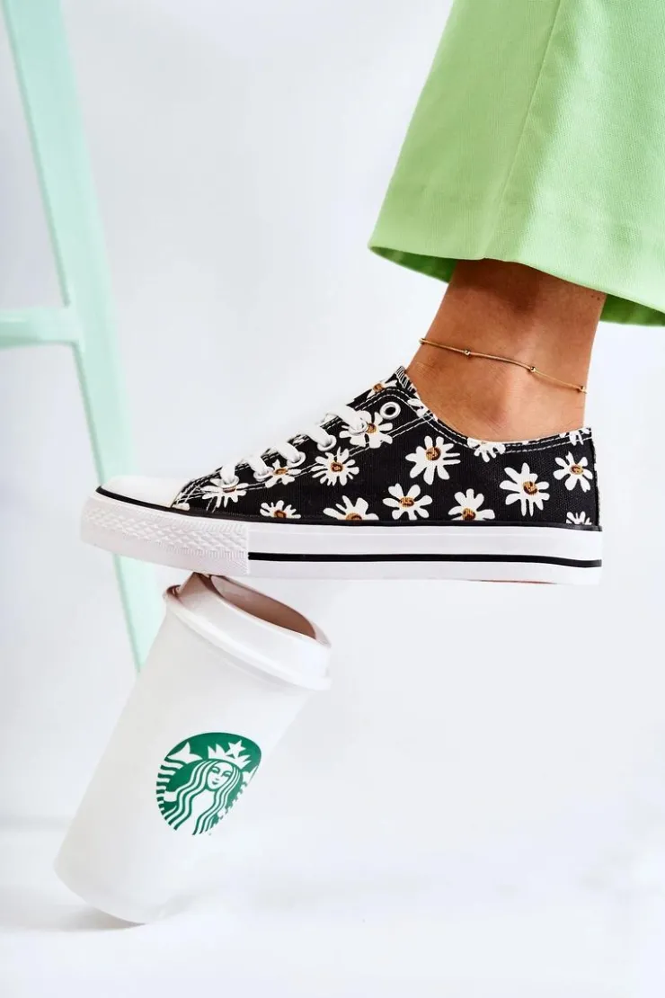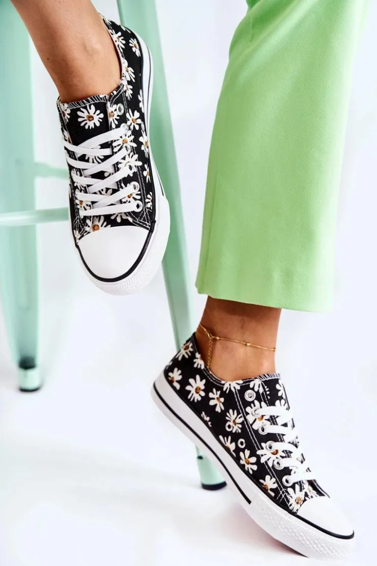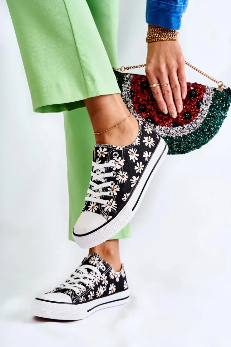 Damskie trampki o klasycznym fasonie i modnym wzorze w kwiaty. Kultowe już trampki pasują do wielu stylizacji. Buty dobrze dopasowują się do kształtu stopy. Zostały wykonane z materiału tekstylnego. Posiadają miękką, materiałową wkładkę oraz antypoślizgową podeszwę. Model wiązany. Nosek został wzmocniony gumowym tworzywem. Koniecznie sprawdź całą naszą kolekcję damskich trampek. Przy wyborze rozmiaru prosimy sugerować się tabelą rozmiarów.