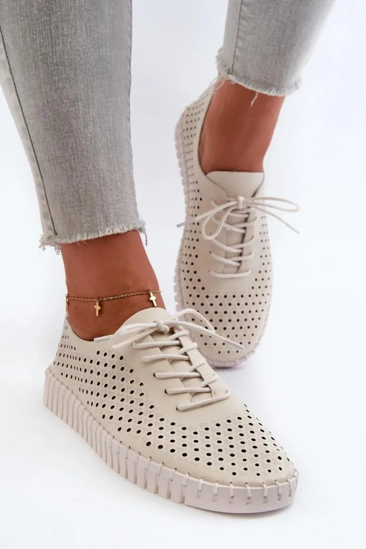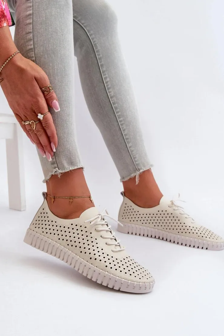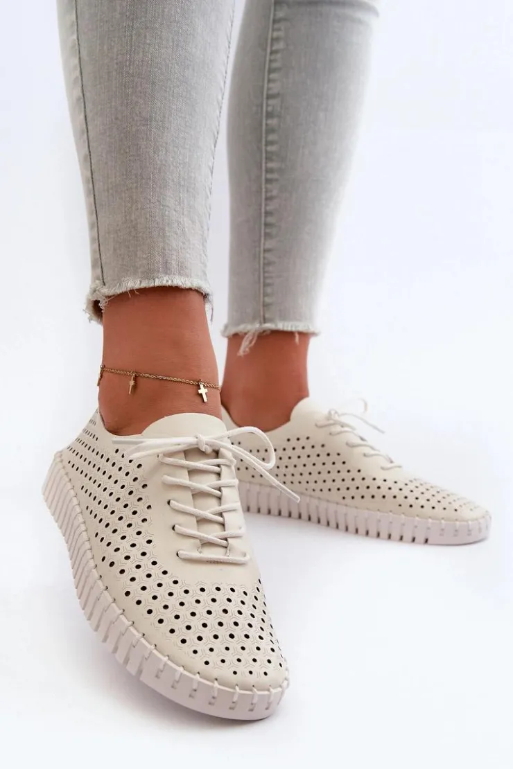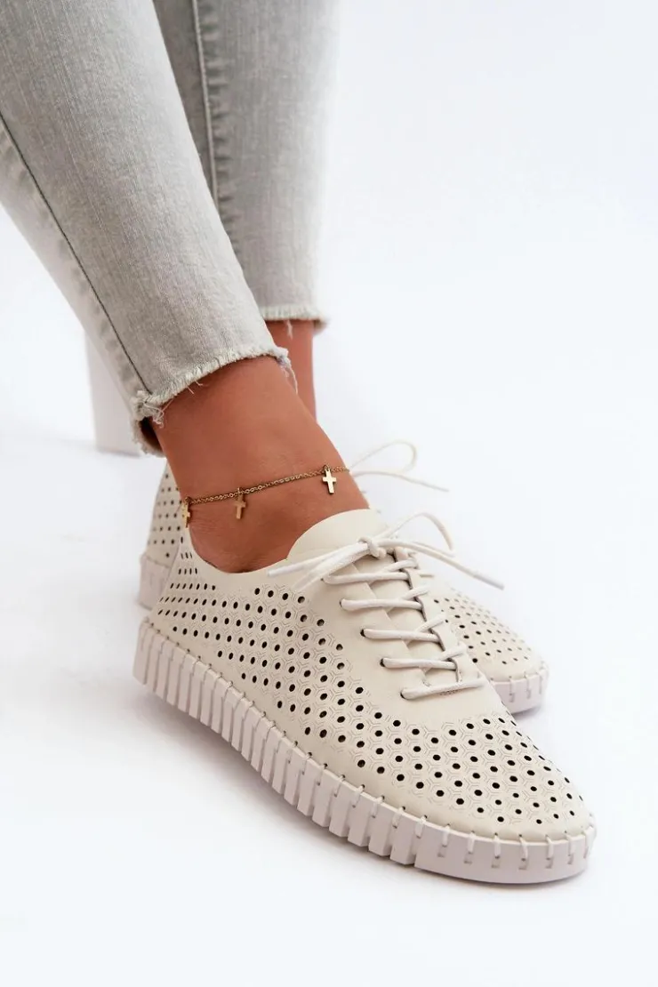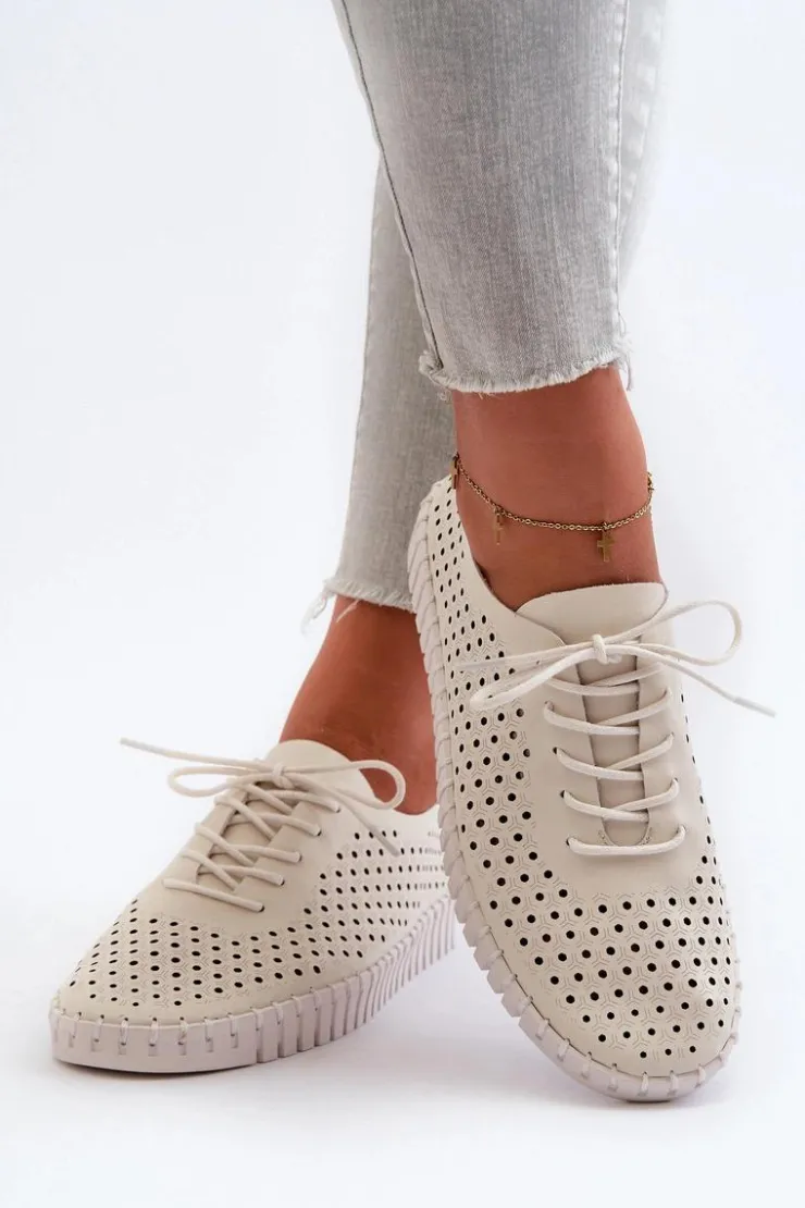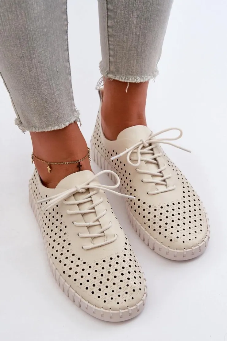 Damskie trampki wykonane ze skóry naturalnej, ozdobione ażurowym wzorem. Te stylowe buty zapewniają komfort i przewiewność, idealne na ciepłe dni. Doskonałe połączenie mody i funkcjonalności, świetnie sprawdzą się w codziennych stylizacjach. Przy wyborze rozmiaru prosimy sugerować się tabelą rozmiarów.