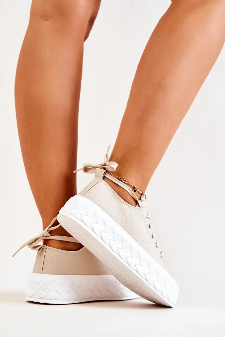 Damskie tenisówki na masywnej platformie pasują do wielu stylizacji. Wykonane z tkaniny. Posiadają materiałową wkładkę. Gumowa platforma jest przyozdobiona pięknym warkoczem. Świetnie sprawdzą się zarówno do spodni jak i spódnic. Wyraź siebie poprzez swój styl i kup te świetne tenisówki już dziś! Przy wyborze rozmiaru prosimy sugerować się tabelą rozmiarów.