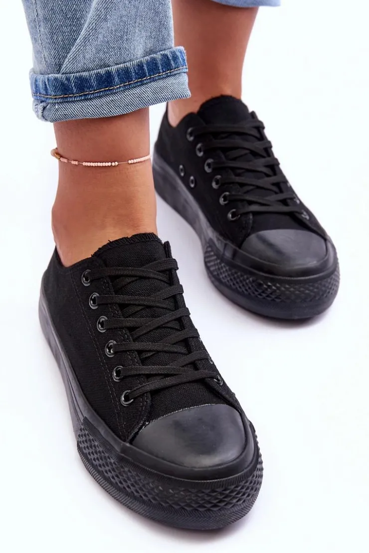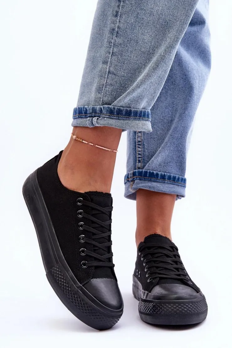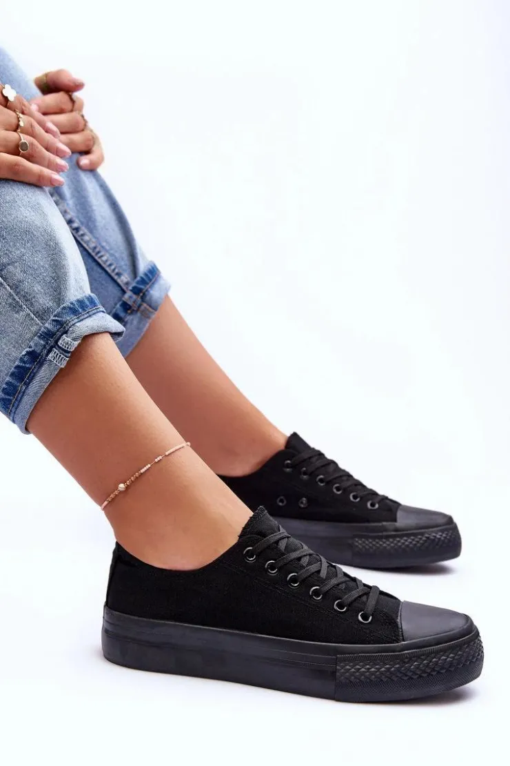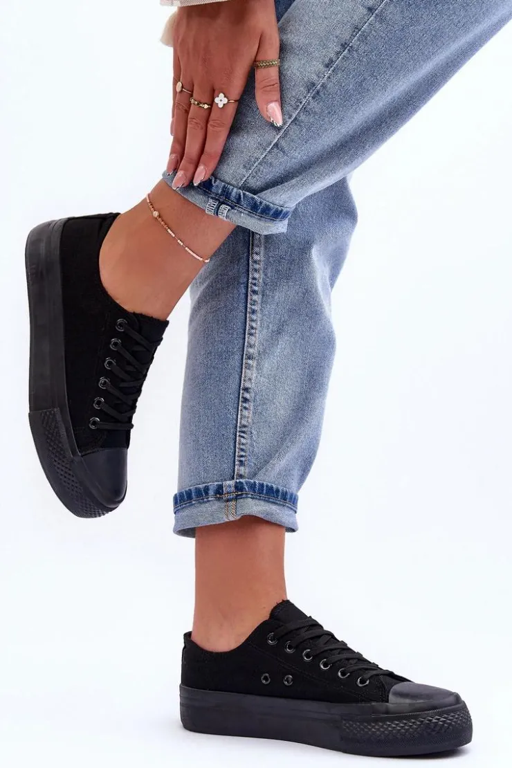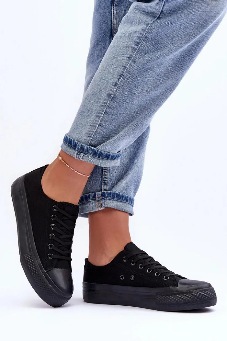 Boto Trampki Damskie Niskie*Trampki Klasyczne Niskie Na Platformie Czarne Jazlyn – Czarna podeszwa