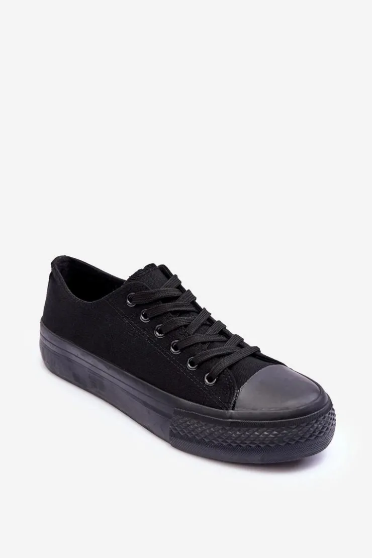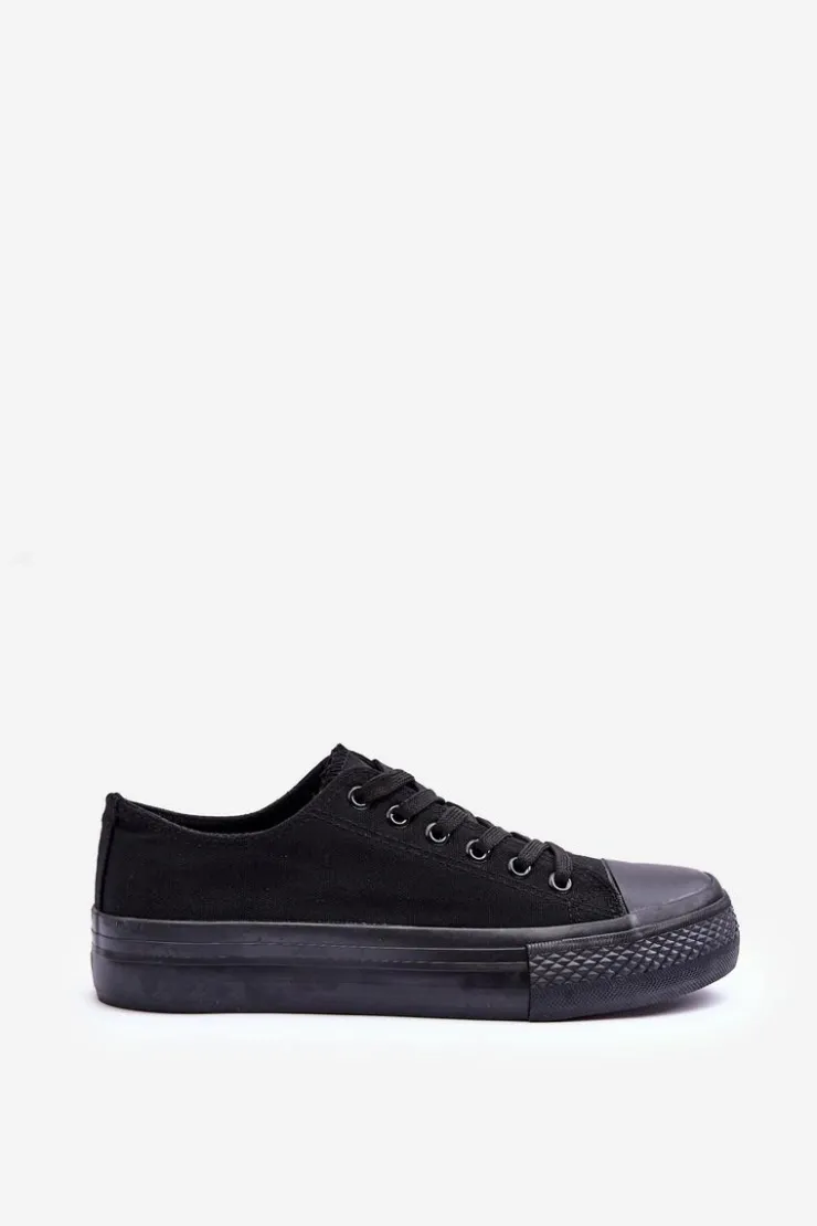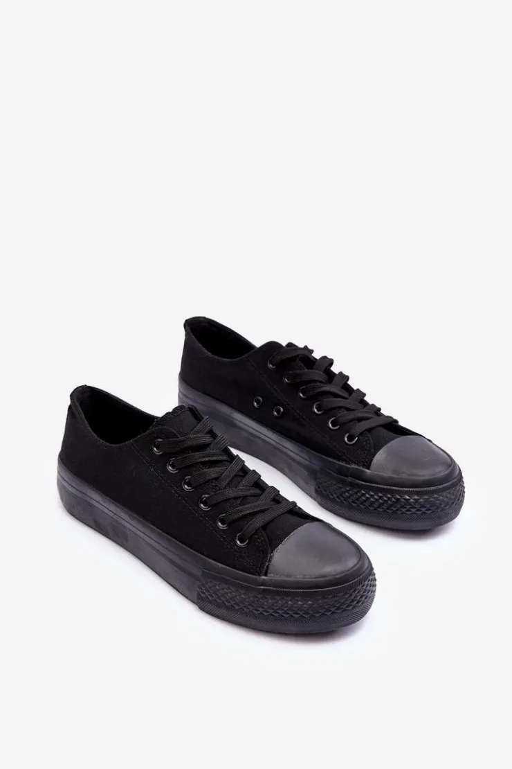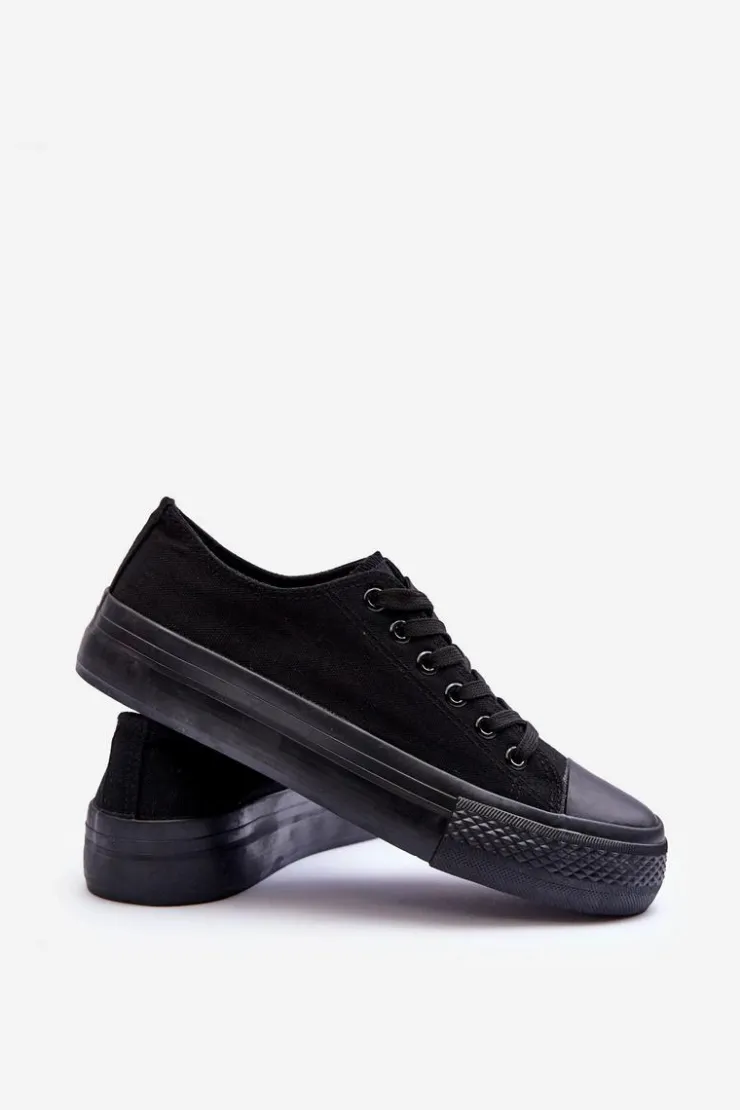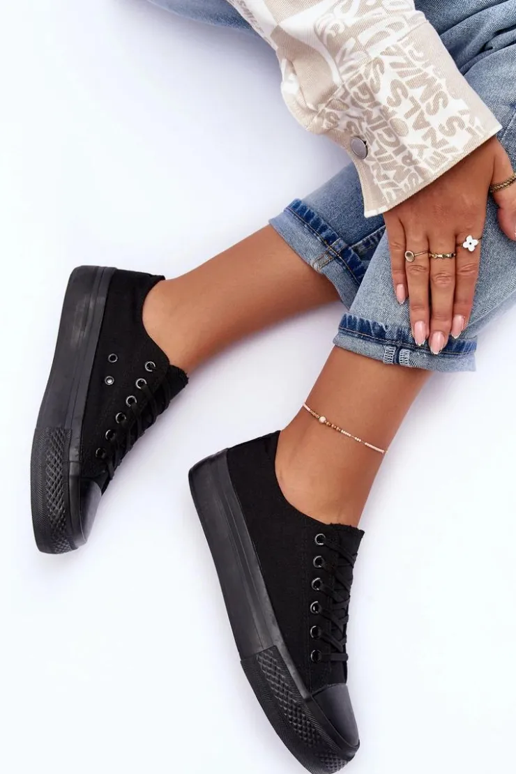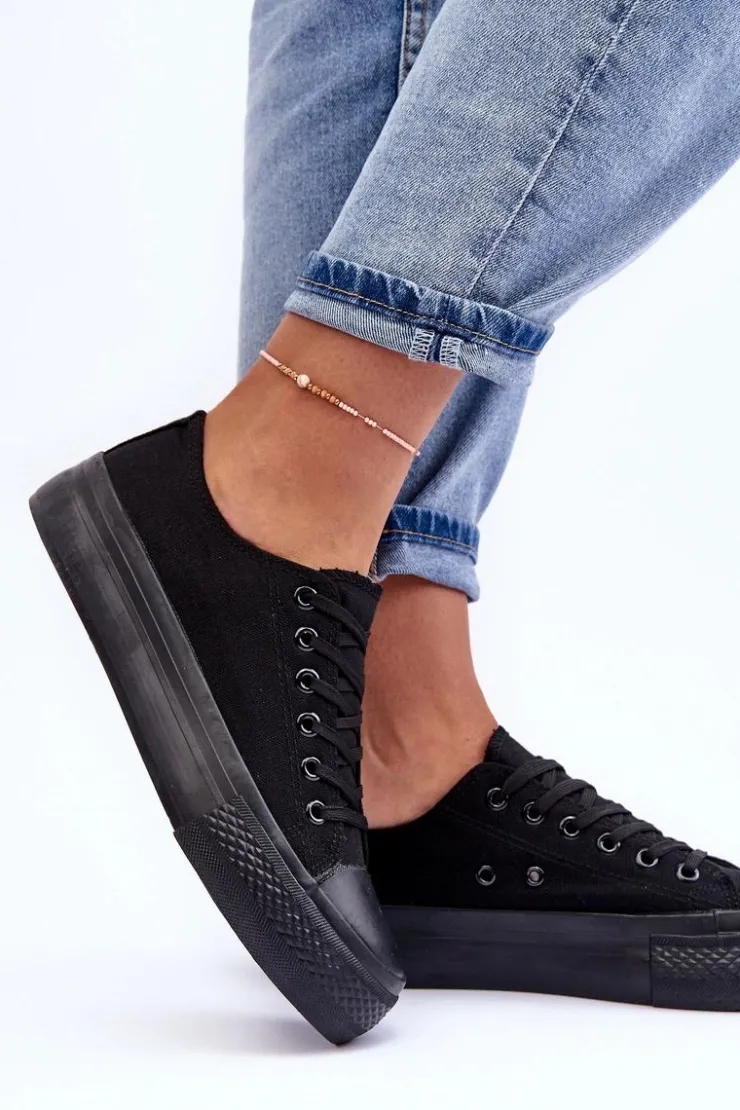Boto Trampki Damskie Niskie*Trampki Klasyczne Niskie Na Platformie Czarne Jazlyn – Czarna podeszwa