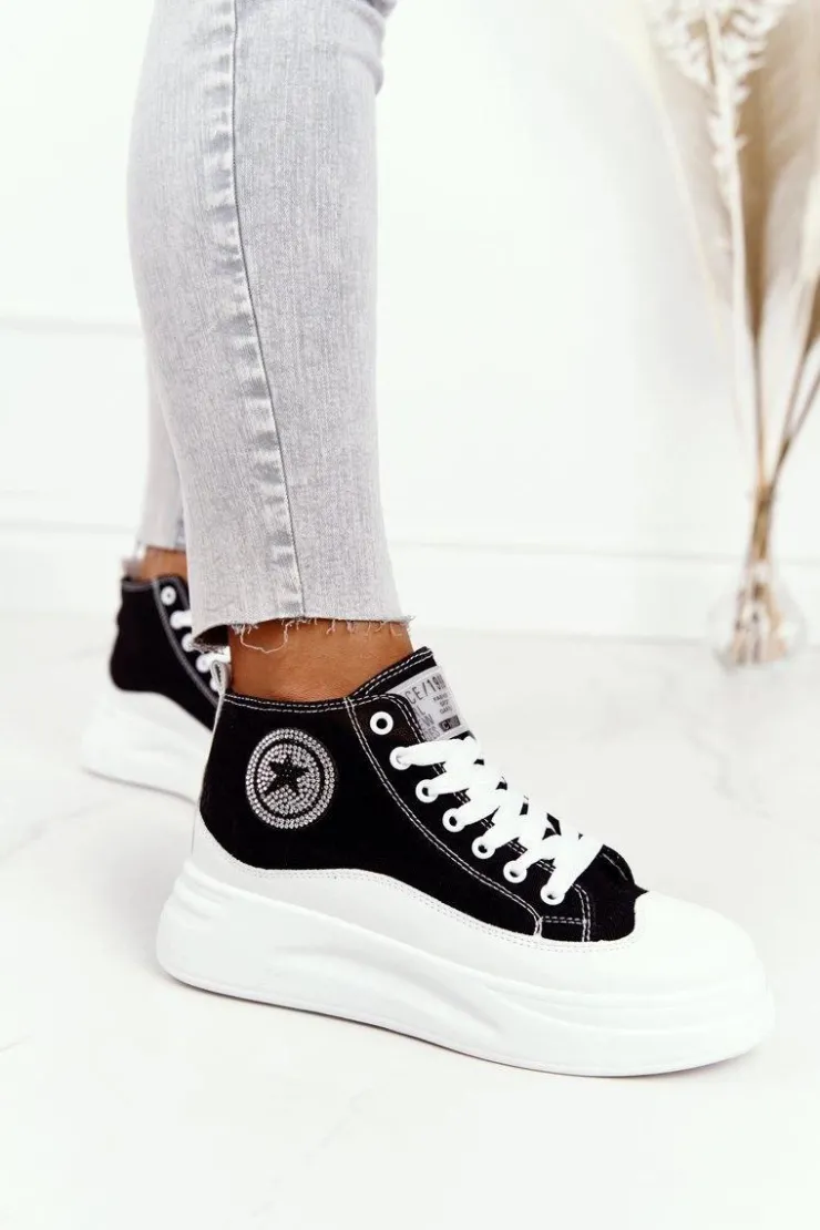 Damskie trampki na platformie. Kultowe już trampki pasują do wielu stylizacji. Buty dobrze dopasowują się do kształtu stopy, posiadają miękką materiałową wkładkę. Koniecznie sprawdź całą naszą kolekcję trampek damskich. Przy wyborze rozmiaru prosimy sugerować się tabelą rozmiarów.