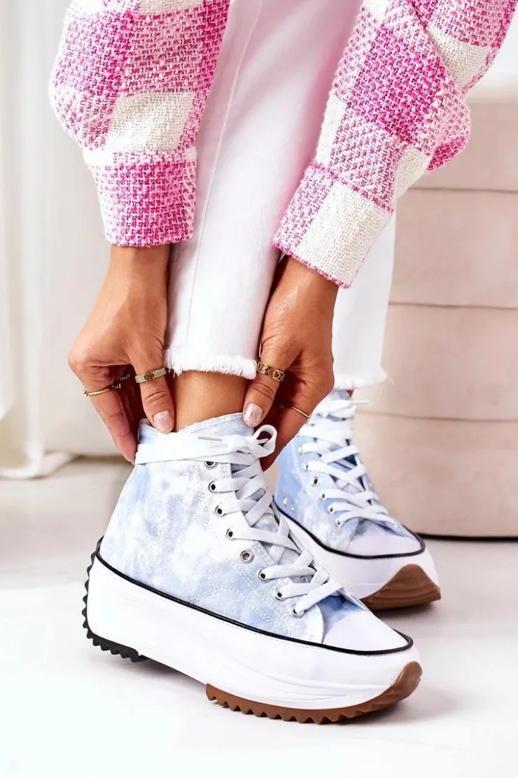 Wyjątkowe trampki na platformie. Buty dobrze dopasowują się do kształtu stopy, posiadają miękką, materiałową wkładkę oraz antypoślizgową podeszwę. Koniecznie sprawdź całą naszą kolekcję trampek! Przy wyborze rozmiaru prosimy sugerować się tabelą rozmiarów.