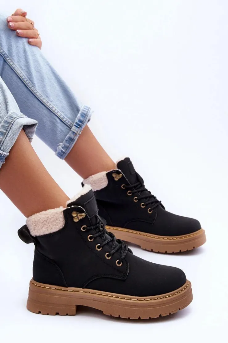 Boto Trapery Damskie Z Kożuchem Czarne Jette