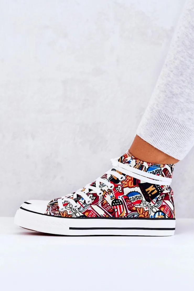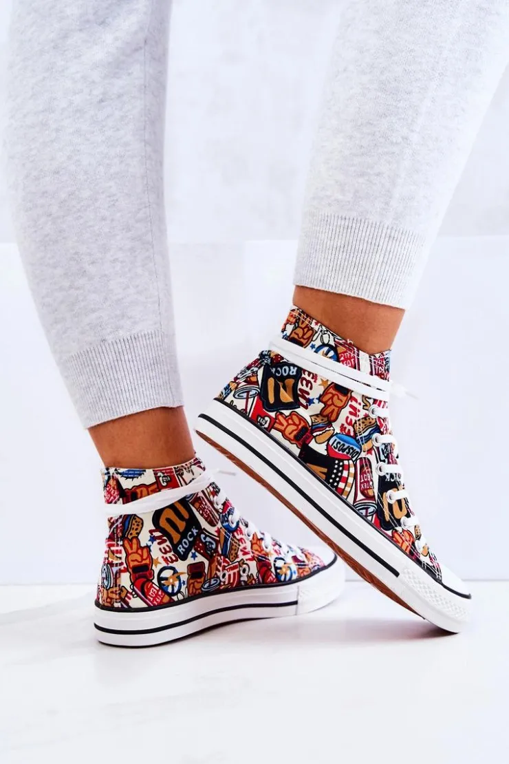 Wysokie trampki w klasycznej formie i modnym wzorze. Kultowe trampki pasują do wielu stylizacji. Buty dobrze dopasowują się do kształtu stopy, posiadają miękką, materiałową wkładkę oraz antypoślizgową podeszwę. Model wiązany z wyższą cholewką. Nosek gumowy. Koniecznie sprawdź całą naszą kolekcję damskich trampek. Przy wyborze rozmiaru prosimy sugerować się tabelą rozmiarów.