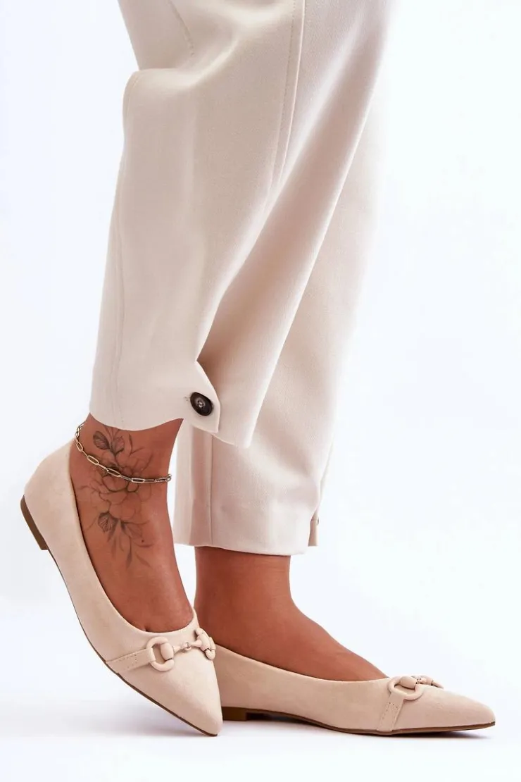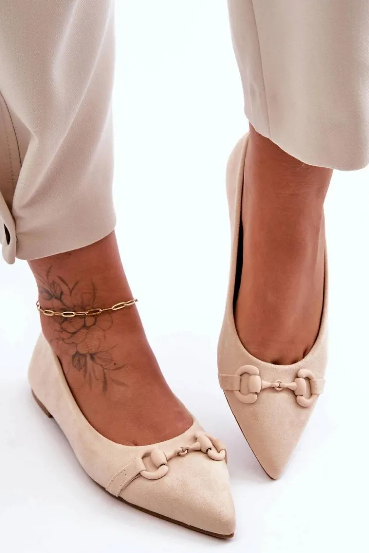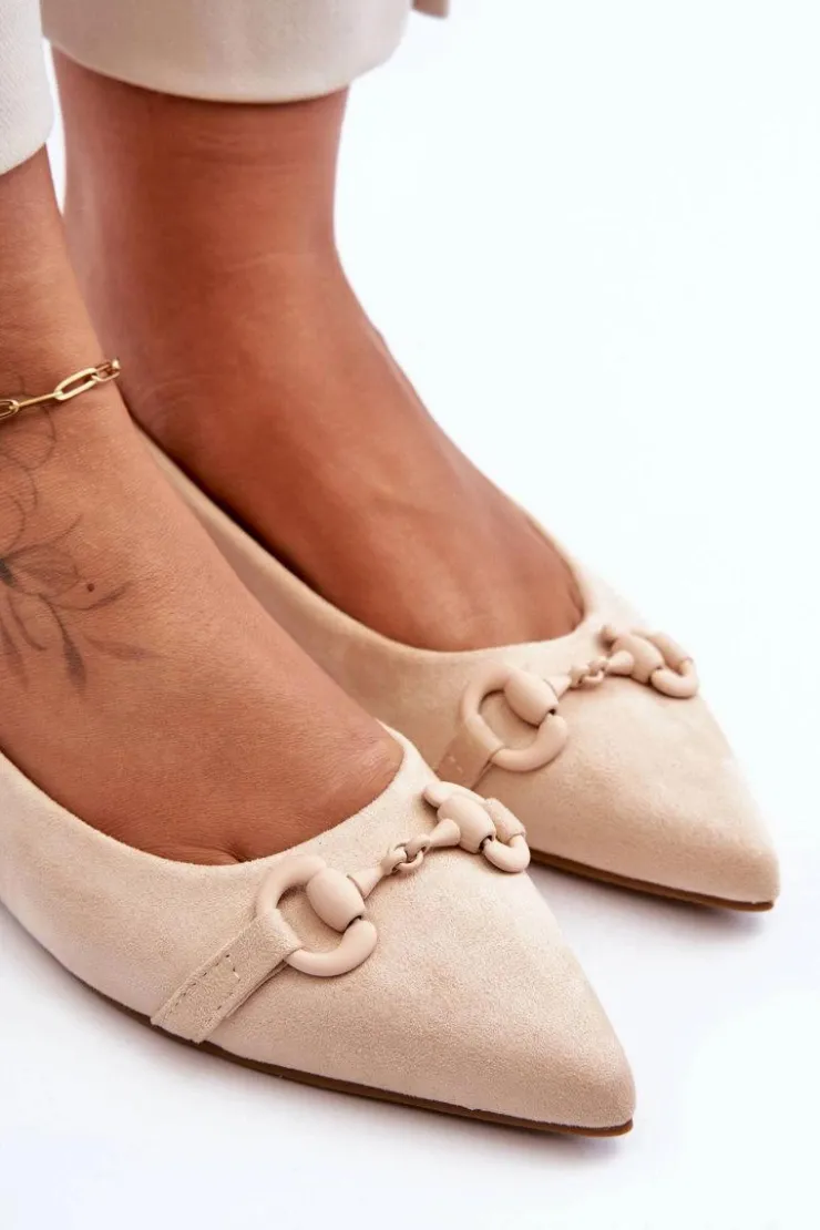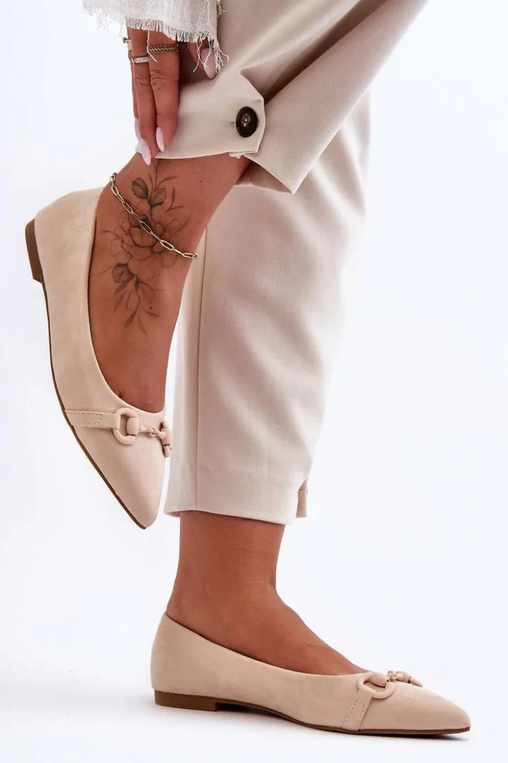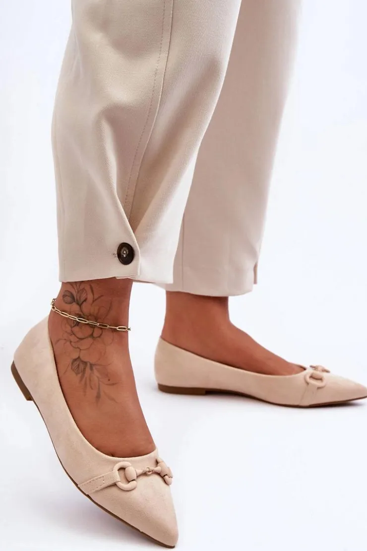 Boto Zamszowe Baleriny Z Ozdobą Beżowe Noldaia