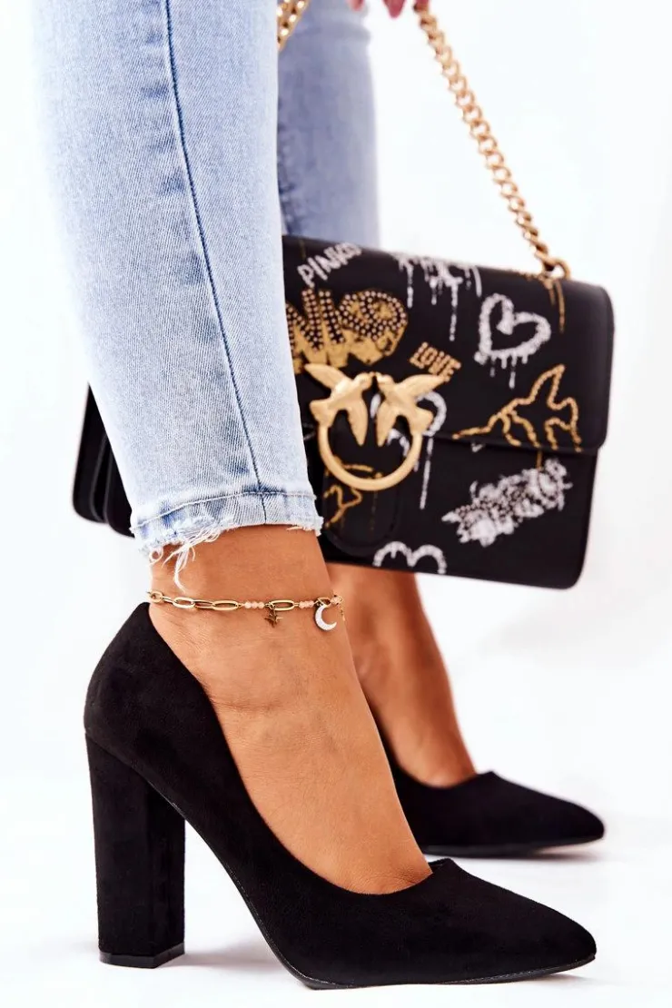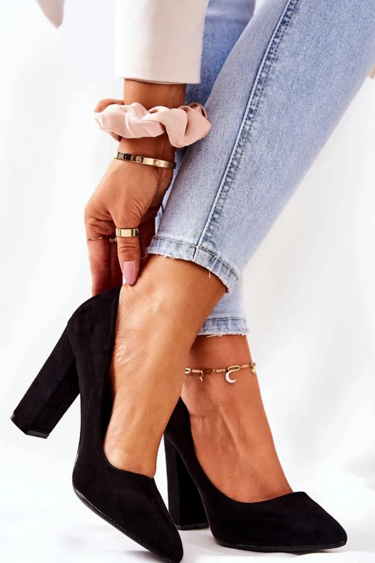 Boto Zamszowe Czółenka Na Słupku Czarne Valoris