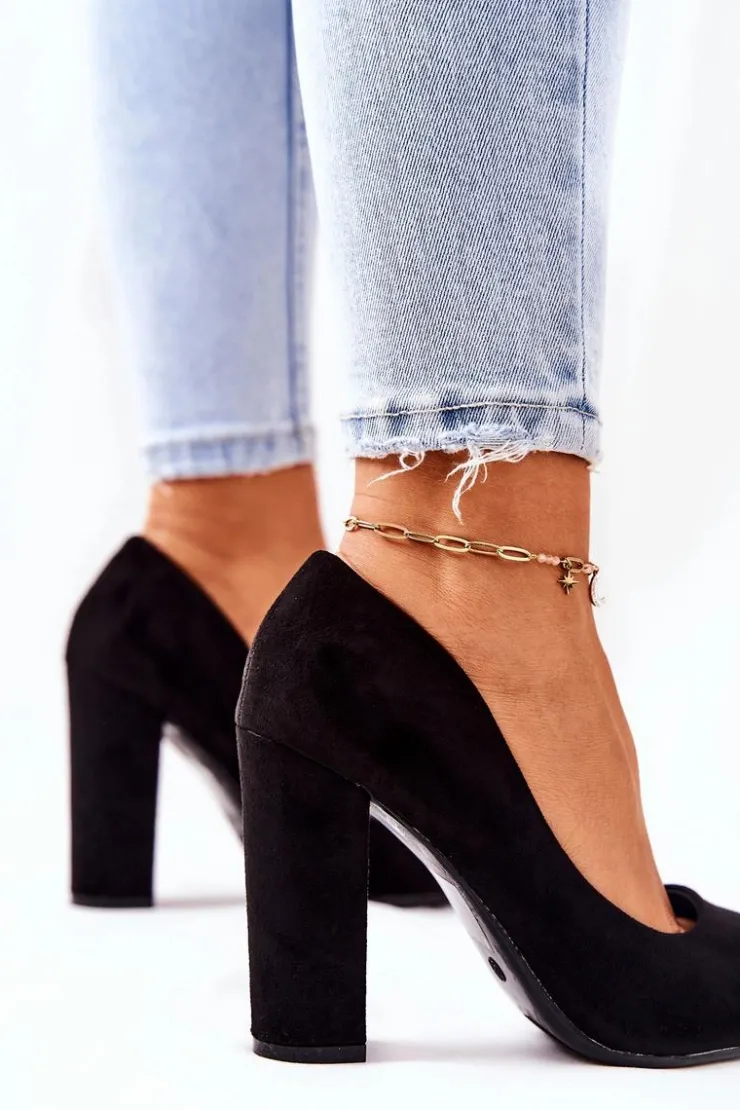 Idealne czółenka na przyjęcie bądź biznesowe spotkania! Muszą być Twoje! Zostały wykonane z eko skóry zamszowej. Stabilny słupek uniesie Twoją sylwetkę. O komfort zadba miękka wkładka wykonana z eko skóry. Nosek w szpic optycznie wysmukli nogę. Koniecznie sprawdź także inne modele czółenek w naszej ofercie! Przy wyborze rozmiaru prosimy kierować się tabelą rozmiarów