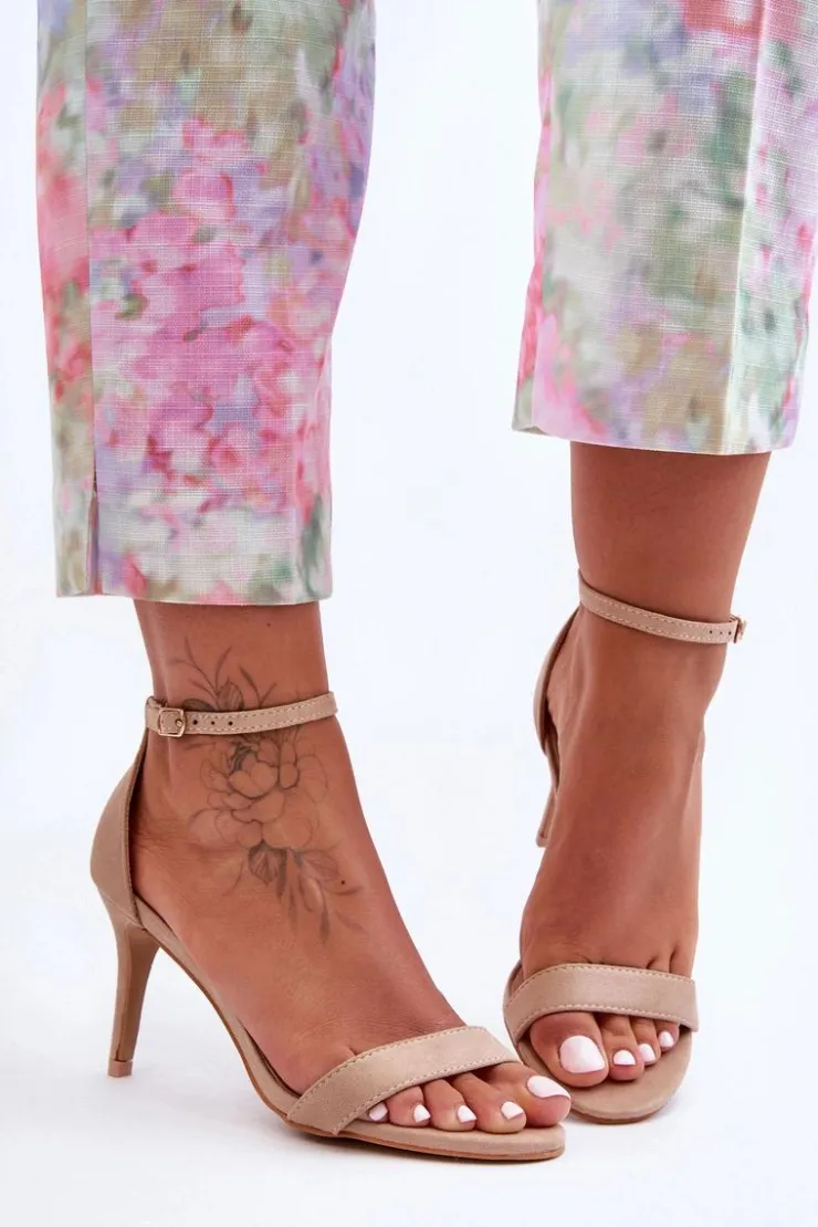 Klasyczne sandały zostały wykonane z eko zamszu. Posiadają usztywniany zapiętek. Model z odkrytym, zaokrąglonym noskiem. Sandały zapinane są wokół kostki na regulowany pasek ze sprzączką. Miękka wkładka wykonana z eko skóry pozwoli na komfortowe użytkowanie. Przy wyborze rozmiaru prosimy sugerować się tabelą rozmiarów.