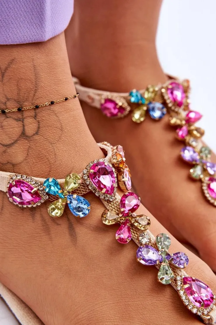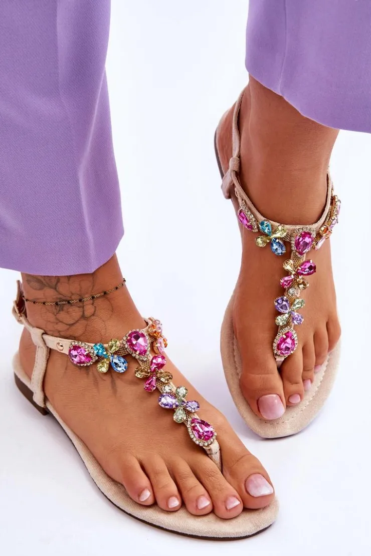 Boto Zamszowe Sandały Japonki Z Kamieniami Beżowe Frency