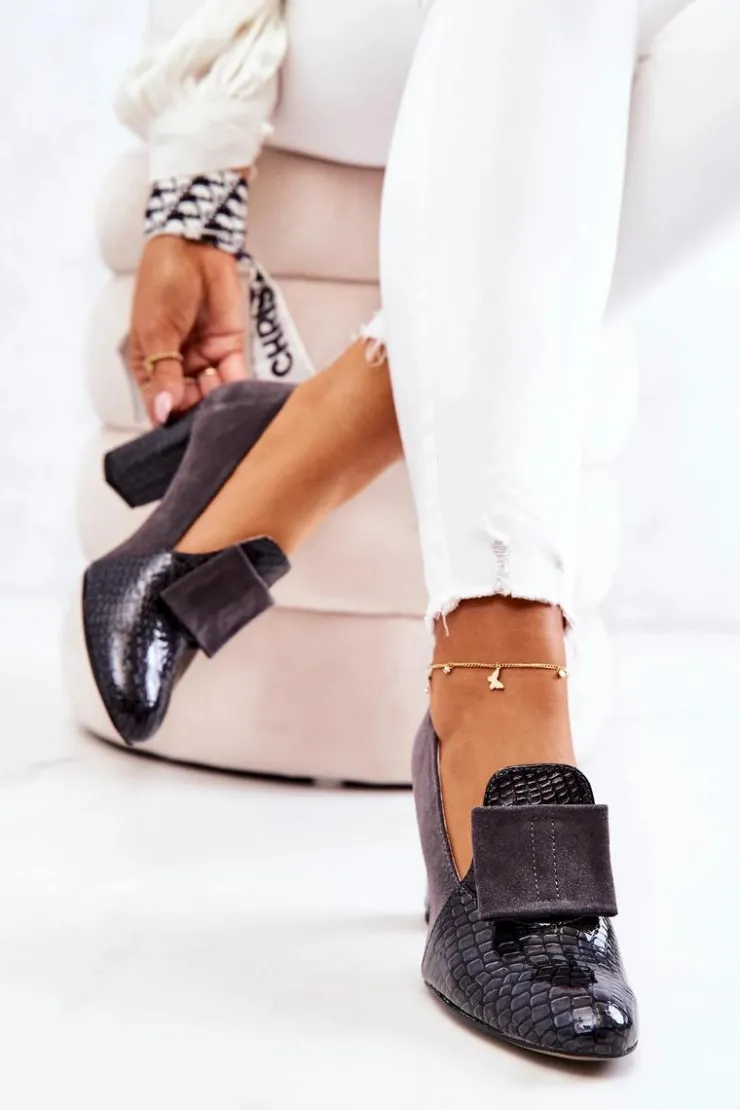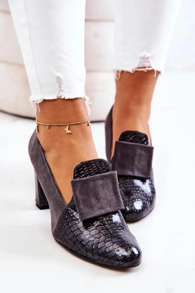 Piękne czółenka są wykonane z naturalnej skóry. Modny wzór na przodzie oraz obcasie. Miękka wkładka z naturalnej skóry daje poczucie komfortu na każdym kroku. Buty wykonane z dbałością o szczegóły. Nie możesz przejść obojętnie obok tego modelu! Nie zwlekaj i kup już dziś! Przy wyborze rozmiaru prosimy sugerować się tabelą rozmiarów, która dostępna jest po najechaniu bądź kliknięciu w dany rozmiar.