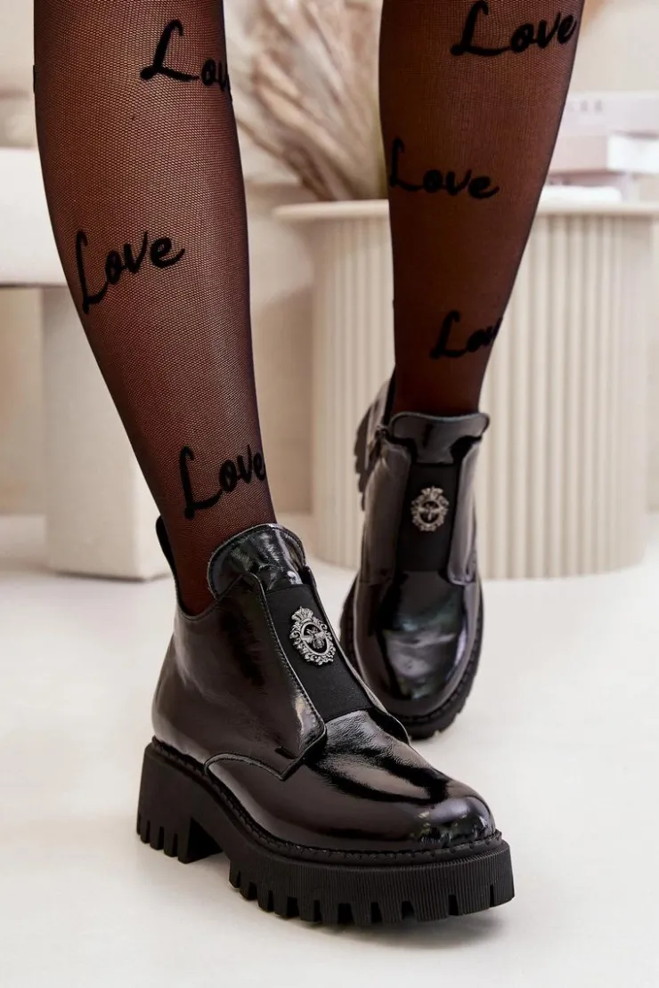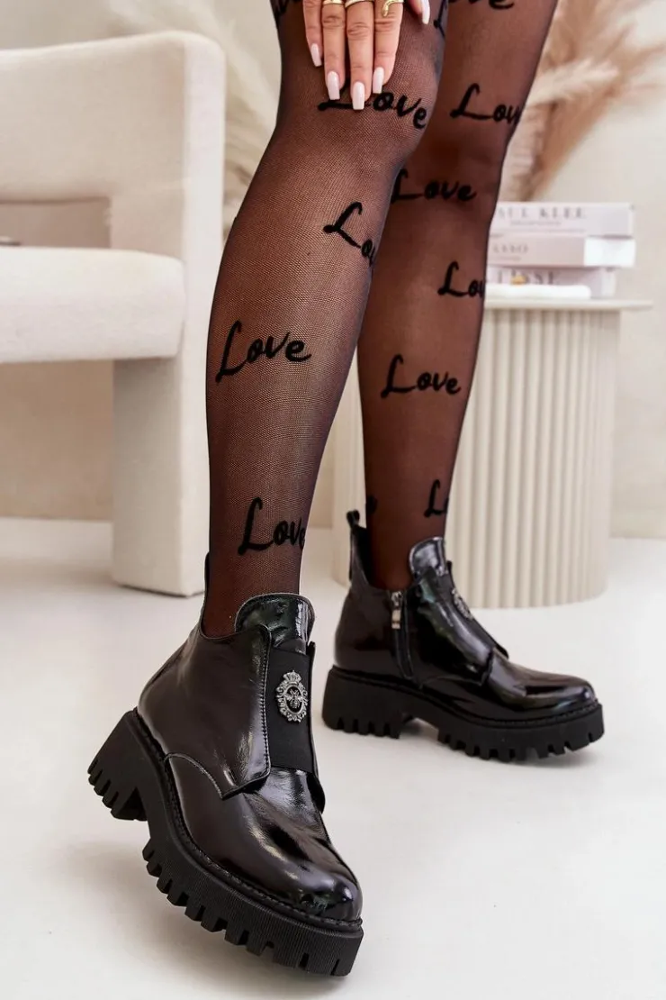 Damskie botki zostały wykonane z wysokiej jakości naturalnej skóry. Osadzone na masywnym obcasie i platformie ze żłobieniami. Model zapinany na suwak po wewnętrznej stronie cholewki. Z przodu na elastycznej wstawce znajduje się ozdoba z tworzywa sztucznego. Wnętrze ocieplone kocem obuwniczym. Ten wyjątkowy model wzbogaci wiele Twoich stylizacji! Przy wyborze rozmiaru prosimy sugerować się tabelą rozmiarów.