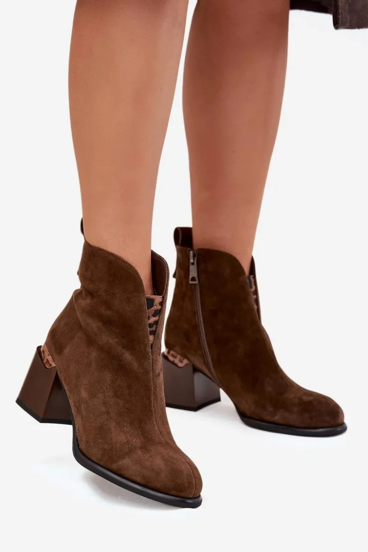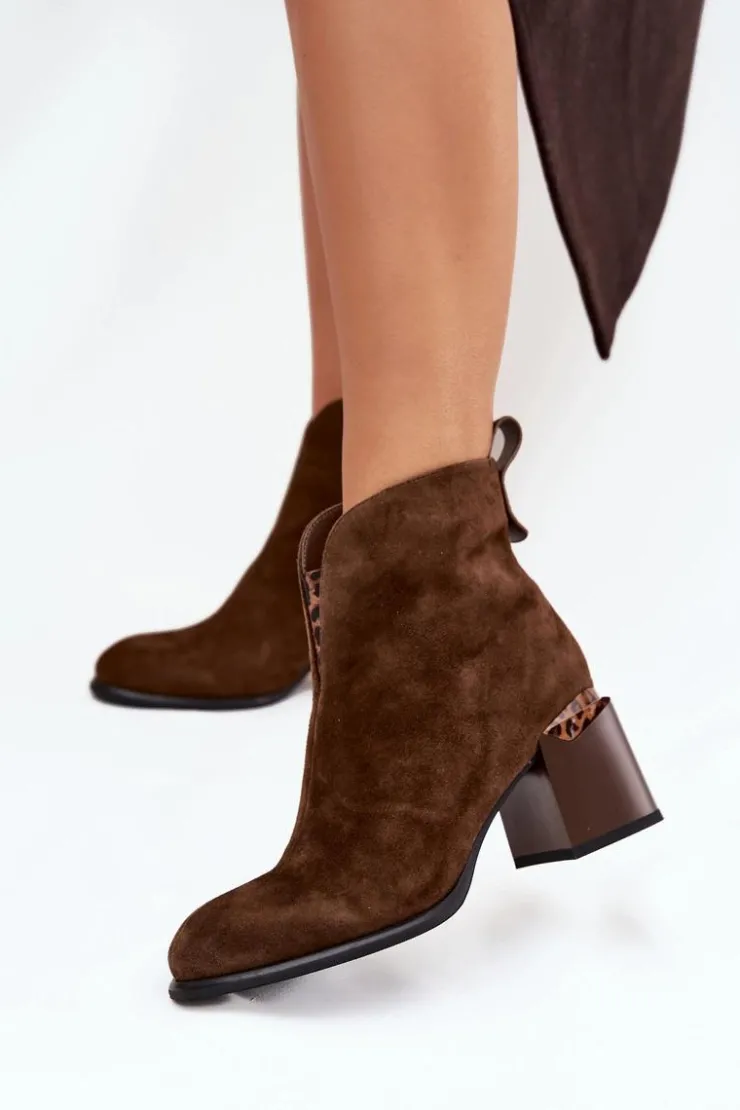 Buty damskie Vinceza Botki Ocieplane|Botki Skórzane*Skórzane Zamszowe Botki Damskie Na Słupku Vinceza 66811 Brązowe