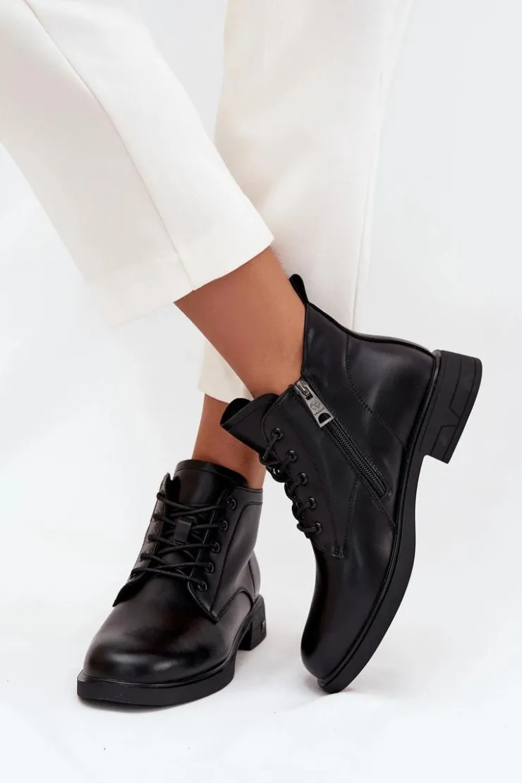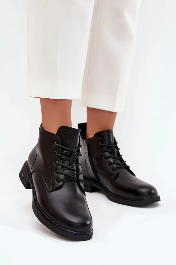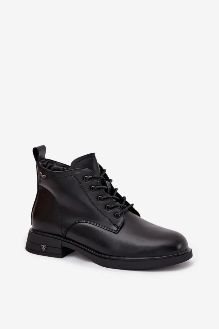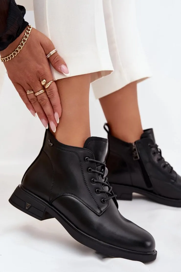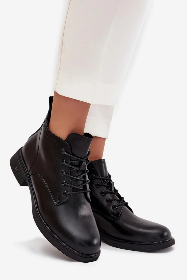 Buty damskie Vinceza Botki Ocieplane|Botki Sznurowane*Ocieplane Skórzane Botki Damskie Na Niskim Obcasie Vinceza 39953 Czarne Czarny
