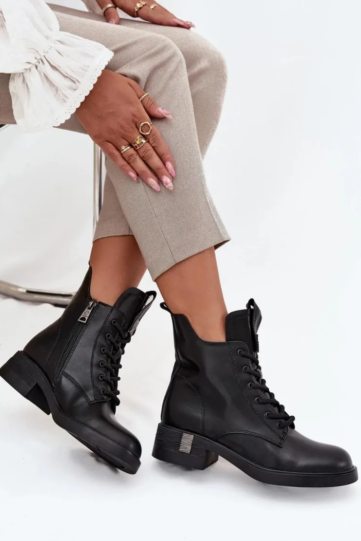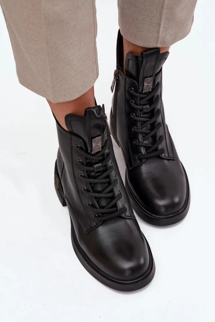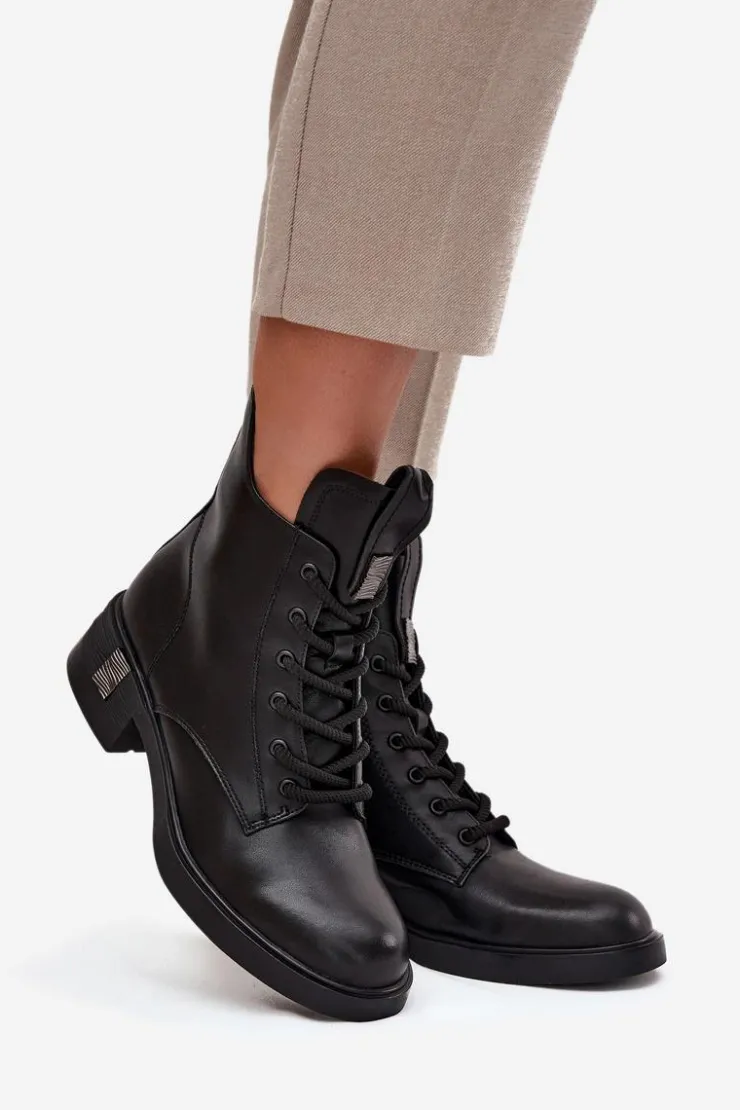Botki damskie marki Vinceza to wygodna i praktyczna propozycja na chłodniejsze dni. Wykonane z naturalnej skóry, prezentują wysoką jakość i klasyczny styl. Model sznurowany z dodatkowym zapięciem na zamek zapewnia dobre dopasowanie do stopy oraz wygodę zakładania. Osadzone na niskim obcasie gwarantują komfort noszenia na co dzień, a zaokrąglone noski nadają im ponadczasowego charakteru. Wnętrze zostało ocieplone, dzięki czemu buty doskonale sprawdzą się w sezonie jesienno-zimowym. Przy wyborze rozmiaru prosimy sugerować się tabelą rozmiarów.