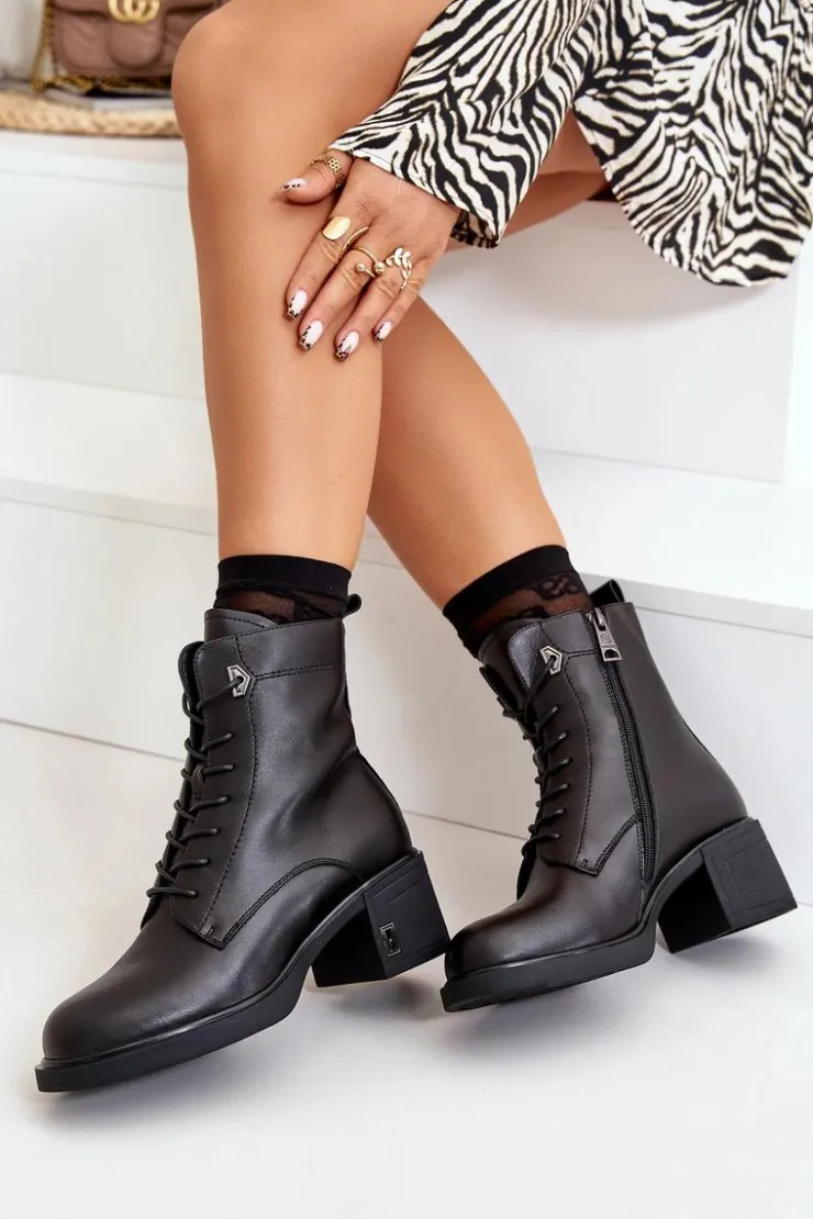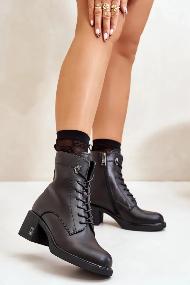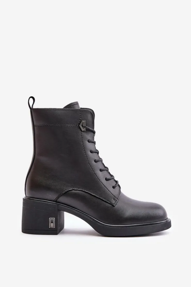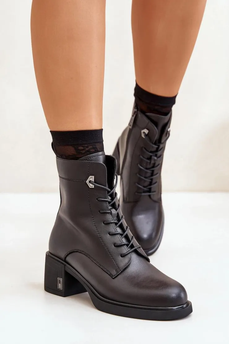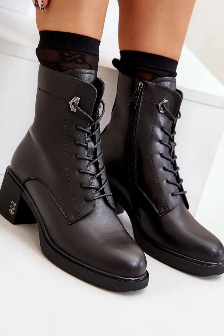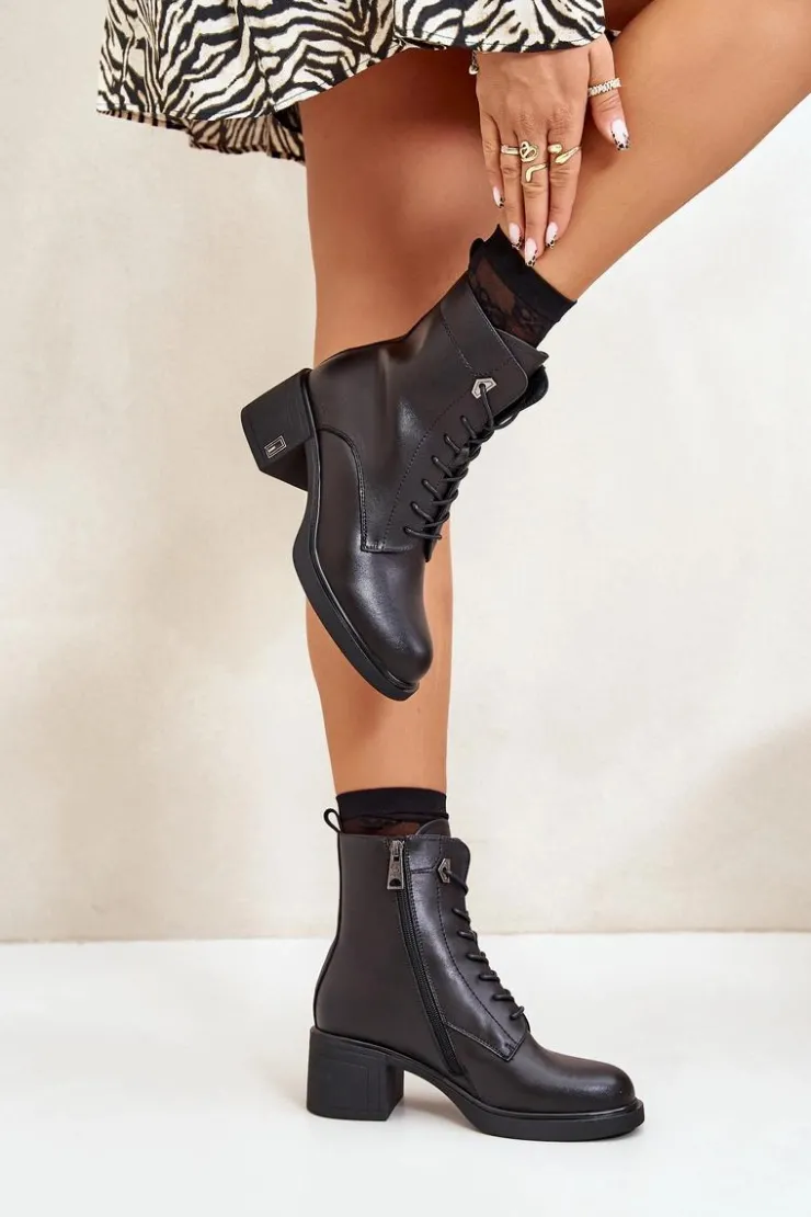 Buty damskie Vinceza Botki Skórzane|Botki Na Słupku*Ocieplane Botki Na Obcasie Ze Skóry Naturalnej Czarne Vinceza 66689