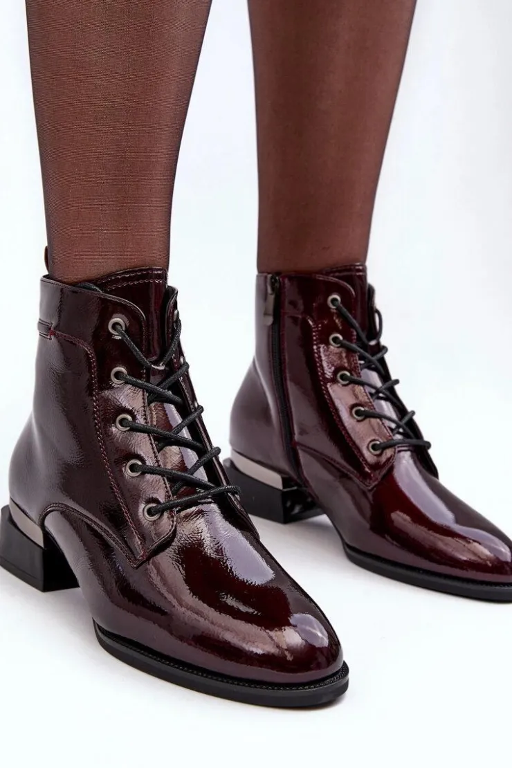 Buty damskie Vinceza Botki Sznurowane|Czarne Botki*Lakierowane Ocieplane Botki Na Suwak Bordowe Achonia