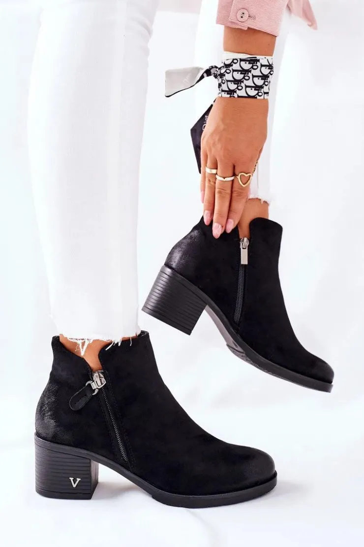 Wierzch wykonany z zamszowej skóry ekologicznej. Suwak na boku ułatwi zakładanie. Ocieplane kocem obuwniczym. Przy wyborze rozmiaru prosimy sugerować się tabelą rozmiarów.