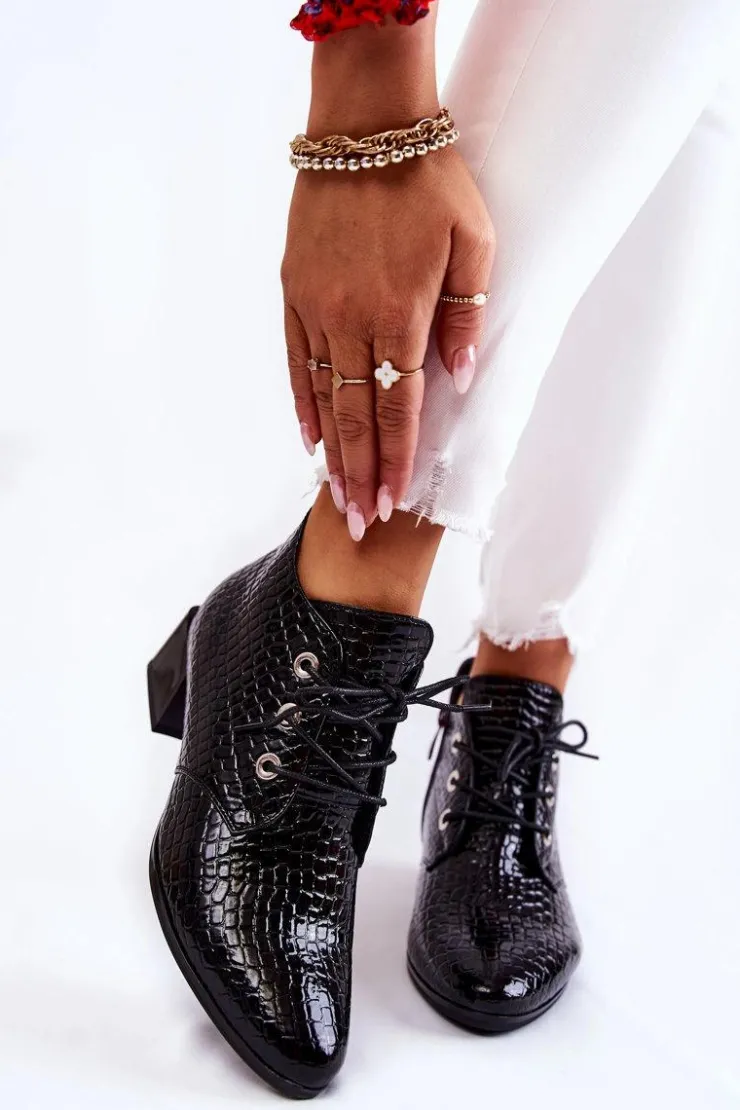 Buty damskie Vinceza Damskie Botki Na Suwak Wzór Krokodyl Czarne Farrah