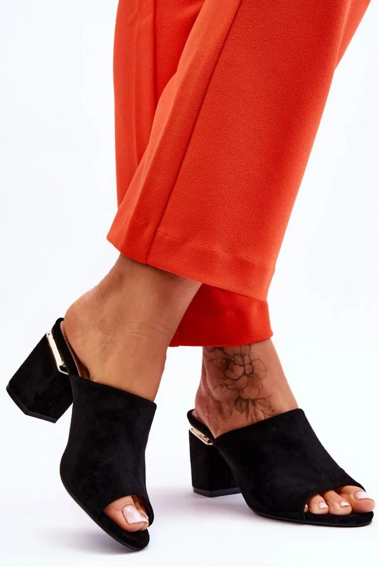 Klasyczne klapki wykonane z wysokiej jakości eko zamszu. Wkładka wykonana z eko skóry jest miękka i wygodna w użytkowaniu. Osadzone na ozdobnym obcasie w postaci słupka. Model wsuwany, świetny na lato. Sprawdź koniecznie pozostałe modele klapek dostępne w naszej ofercie! Przy wyborze rozmiaru prosimy sugerować się tabelą rozmiarów.