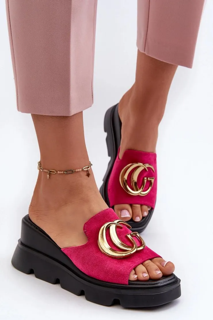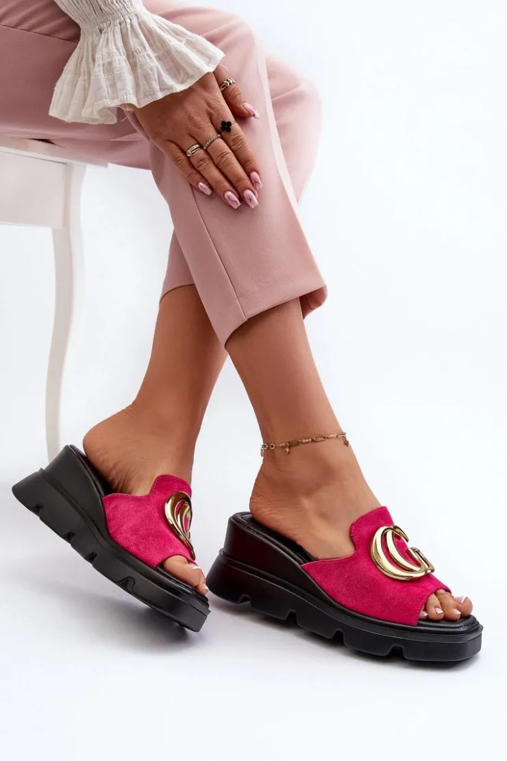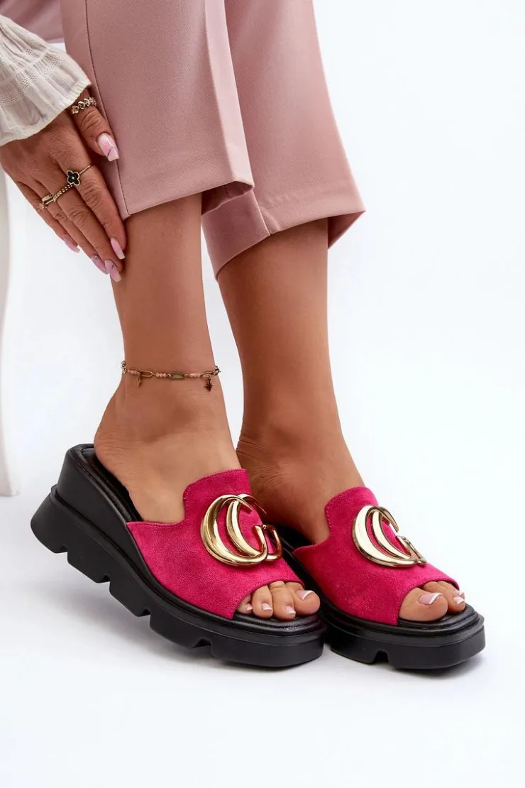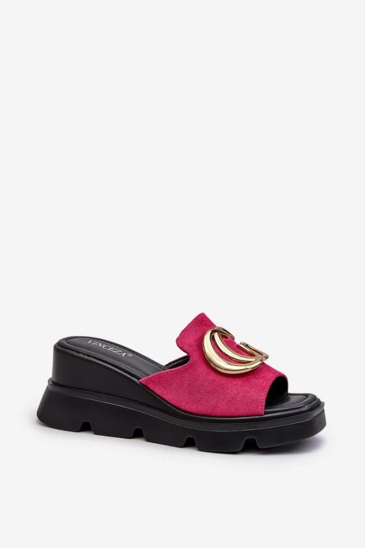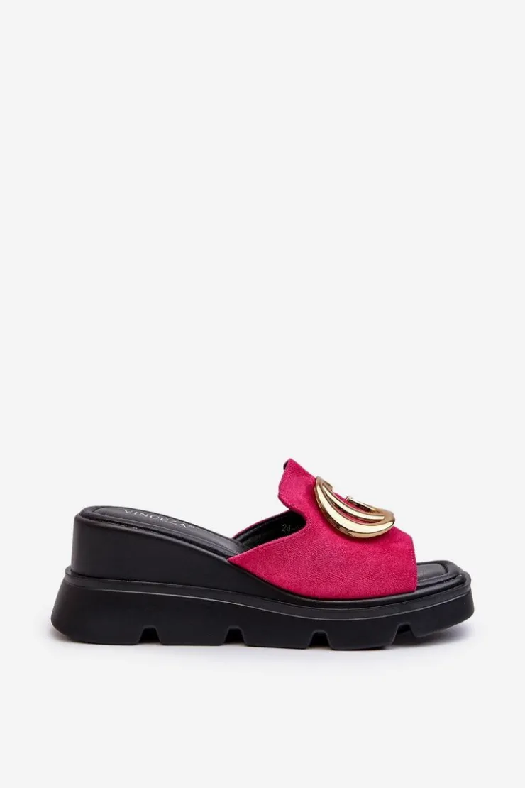 Buty damskie Vinceza Klapki Na Platformie|Klapki Damskie Klasyczne*Klapki Damskie Z Eko Zamszu Na Koturnie I Platformie Ze Złotą Ozdobą Vinceza 58295 Fuksja Różowy