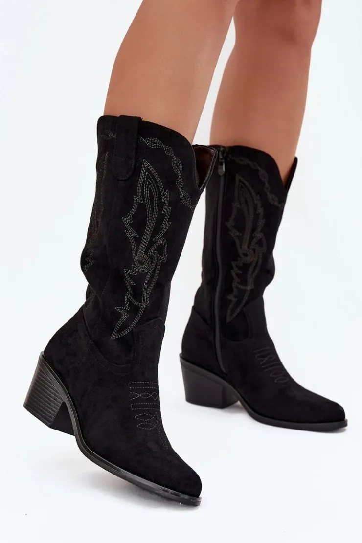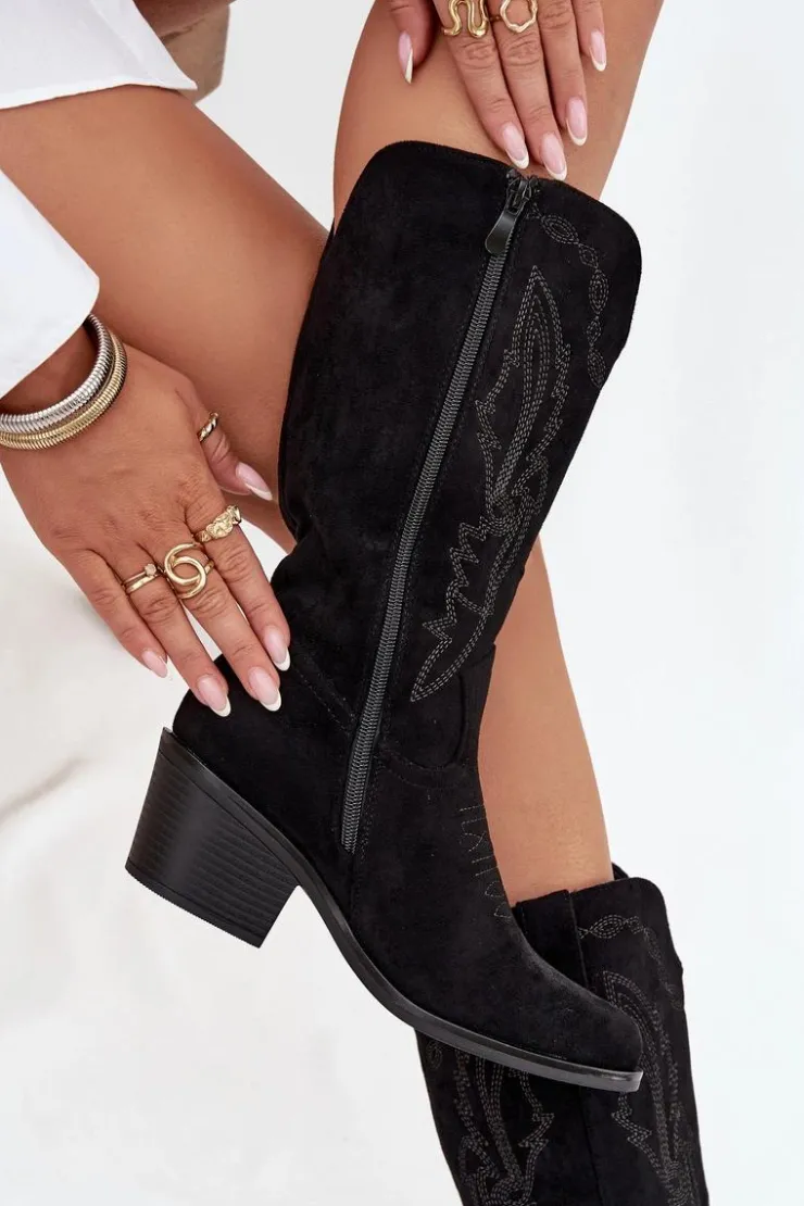 Buty damskie Vinceza Kozaki Na Obcasie|Kozaki Zamszowe*Kozaki Kowbojki Damskie Na Obcasie Ocieplane Vinceza 16508 Czarne Czarny