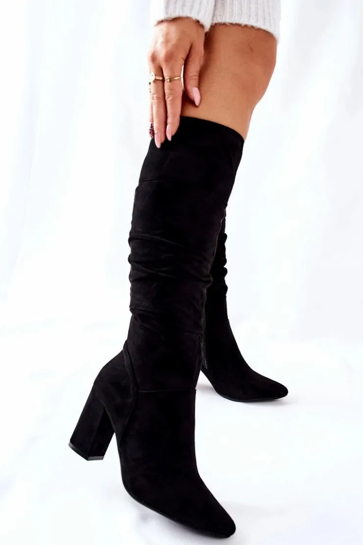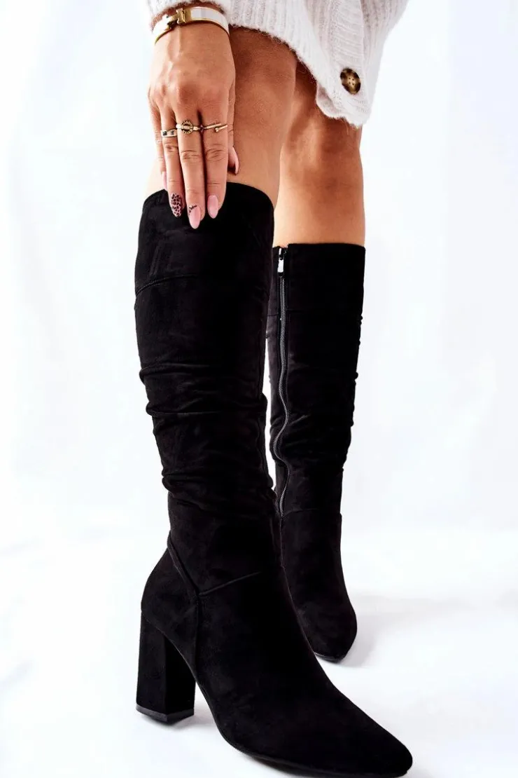 Piękne kozaki na słupku wykonane z zamszowej skóry ekologicznej. Buty osadzone na niewysokim słupku. Zapinanie z boku cholewki ułatwi zakładanie. Przy wyborze rozmiaru prosimy sugerować się tabelą rozmiarów.