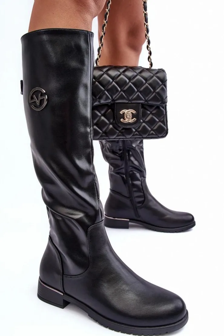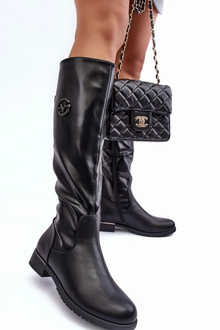 Buty damskie Vinceza Kozaki Płaskie|Kozaki Przed Kolano*Skórzane Kozaki Damskie Na Płaskim Obcasie Czarne Albuna