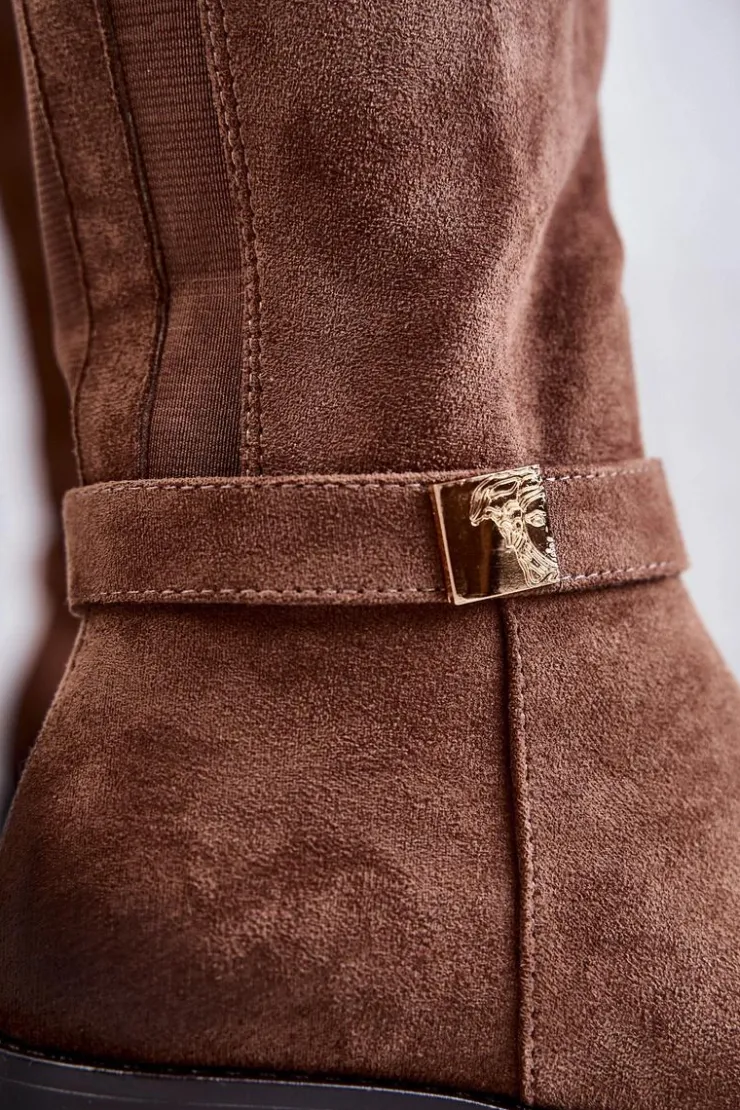 Klasyczne, damskie kozaki zostały wykonane z eko skórzanych materiałów z dbałością o szczegóły. Model ten posiada suwak na całej długości cholewki. Kozaki osadzono na płaskim obcasie. Nie posiadają ocieplenia. Dodatkowo zapiętek jest usztywniany. Cholewka przyozdobiona paskiem z metalową blaszką. Cholewka u góry posiada nieregularne zakończenie. Przy wyborze rozmiaru prosimy sugerować się tabelą rozmiarów.