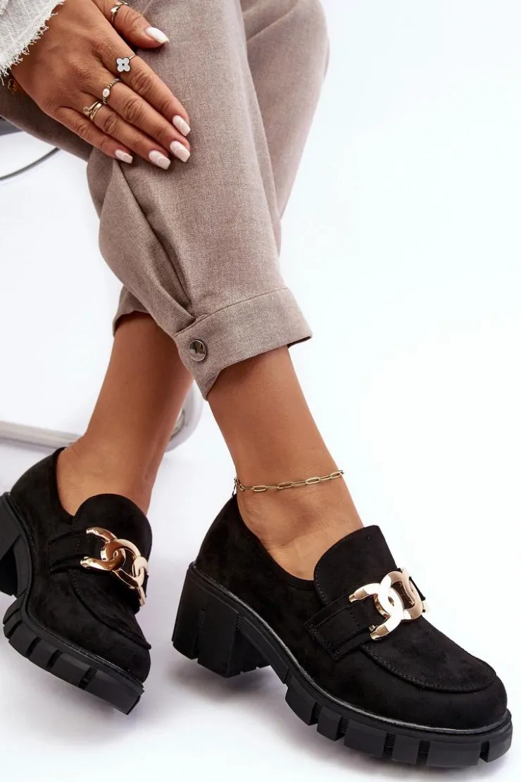 Półbuty damskie wykonane z eko zamszu. Osadzone na masywnym, niskim obcasie. Z przodu złota ozdoba z tworzywa sztucznego. Noski zaokrąglone. Usztywniony zapiętek. Świetny model do wielu stylizacji! Wygodne, a zarazem modne. Koniecznie musisz je mieć! Przy wyborze rozmiaru prosimy sugerować się tabelą rozmiarów.