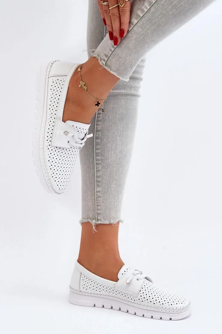 Buty damskie Vinceza Półbuty Skórzane*Skórzane Półbuty Damskie Ażurowe Białe Darnissa