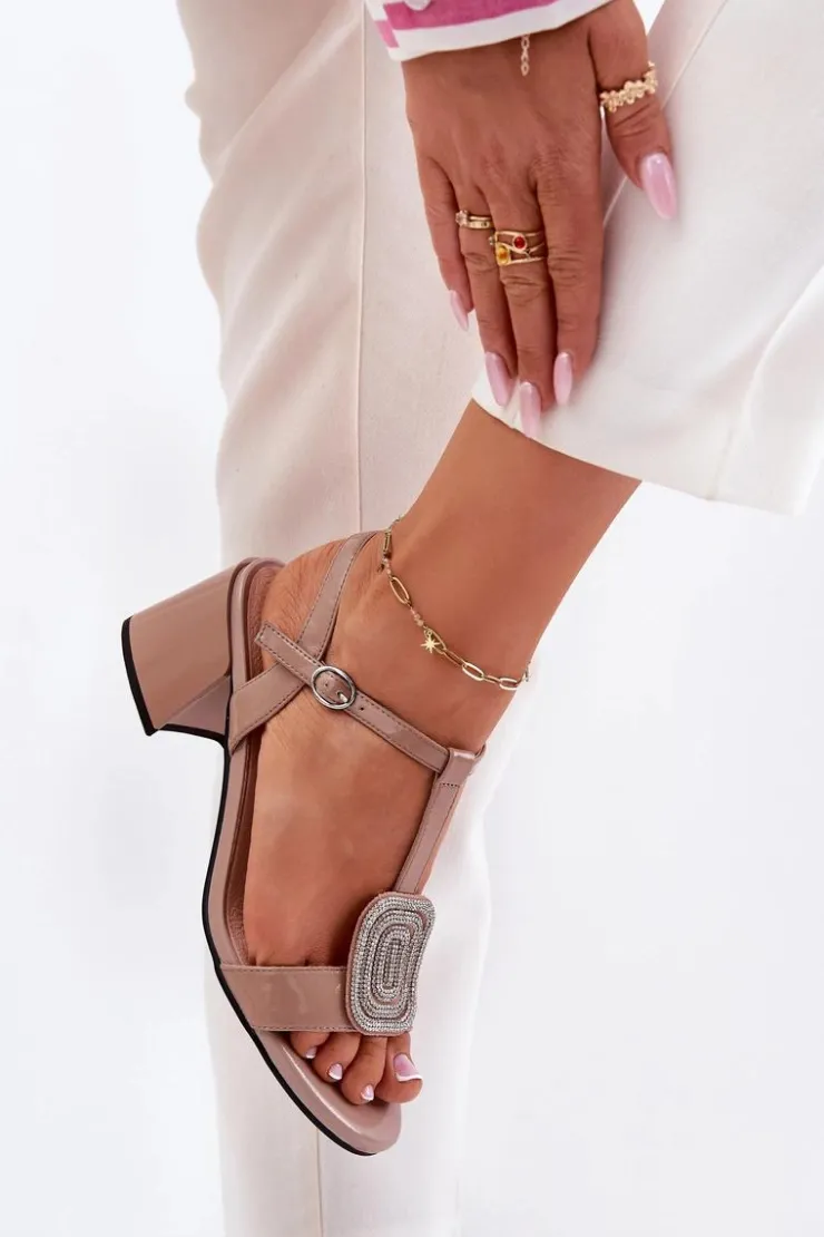 Damskie sandały od marki Vinceza to elegancka propozycja na wyjątkowe okazje. Model z błyszczącą ozdobą z cyrkoniami przyciąga uwagę. Osadzone na obcasie typu słupek, zapewniają stabilność i komfort. Zapinane na sprzączkę, pozwalają na idealne dopasowanie do stopy, a skórzana wkładka gwarantuje wygodę. Te sandały będą doskonałym wyborem na wieczorne wyjścia oraz różne uroczystości. Przy wyborze rozmiaru prosimy sugerować się tabelą rozmiarów.