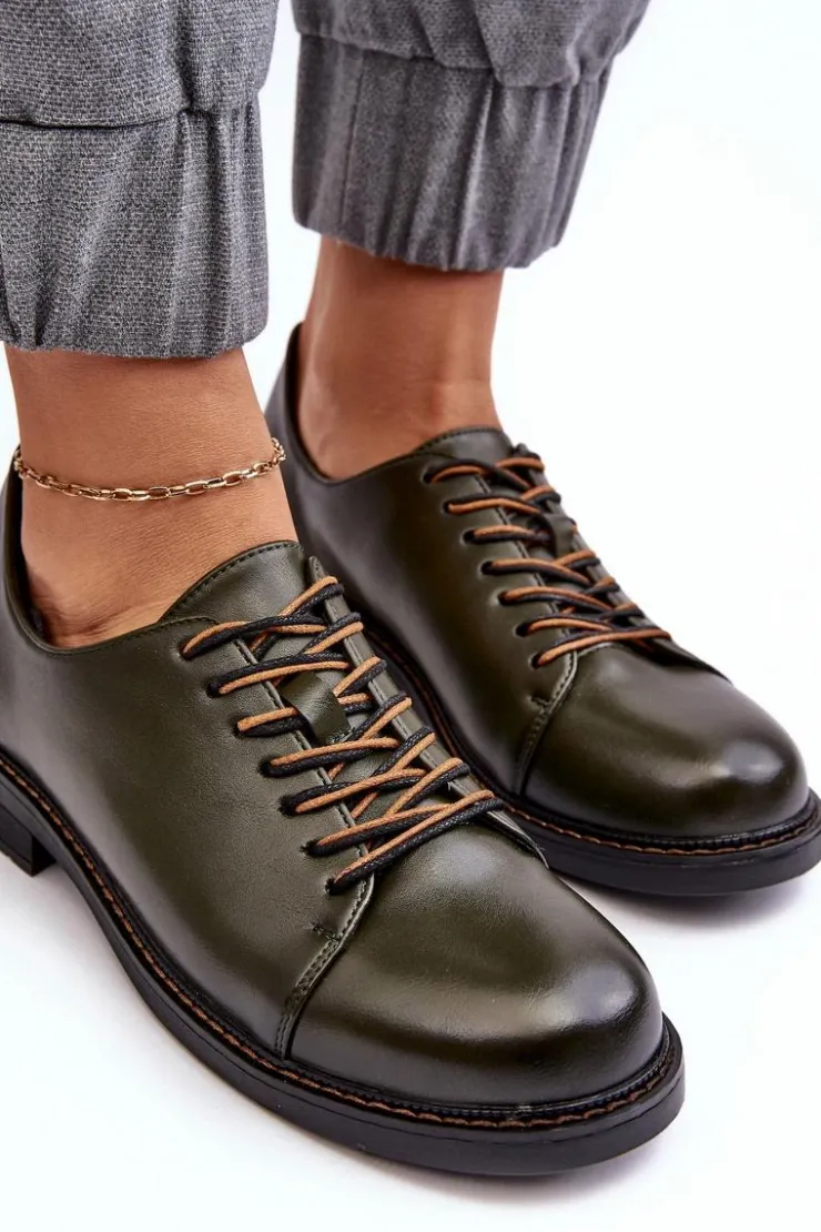 Modne półbuty damskie wykonane z eko skóry. Osadzone na płaskim, stabilnym obcasie. Noski zaokrąglone. Zapiętek jest usztywniony. Wkładka ze skóry naturalnej zapewni komfort podczas użytkowania obuwia. Model klasycznie sznurowany. Buty te sprawdzą się w wielu jesiennych stylizacjach! Koniecznie sprawdź całą naszą kolekcję półbutów! Przy wyborze rozmiaru prosimy sugerować się tabelą rozmiarów.