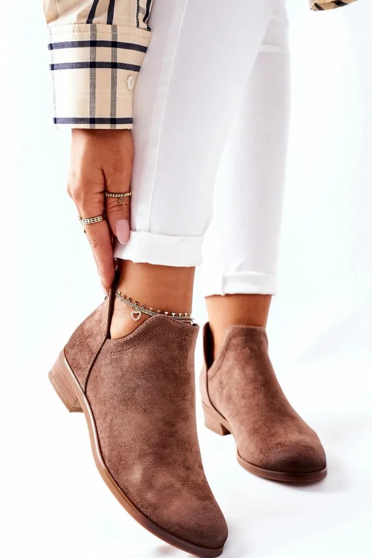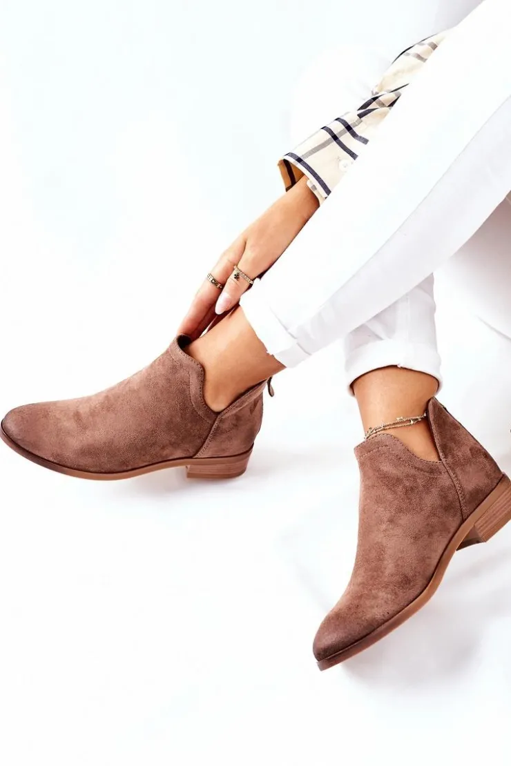 Botki wykonane z ekozamszu idealnie pasują do wielu kobiecych stylizacji. Wnętrze botków pokryte zostało kocem obuwniczym, który zagwarantuje ciepło. Zakładanie ułatwi wszyty z tyłu suwak. Przy wyborze rozmiaru prosimy sugerować się tabelą rozmiarów.